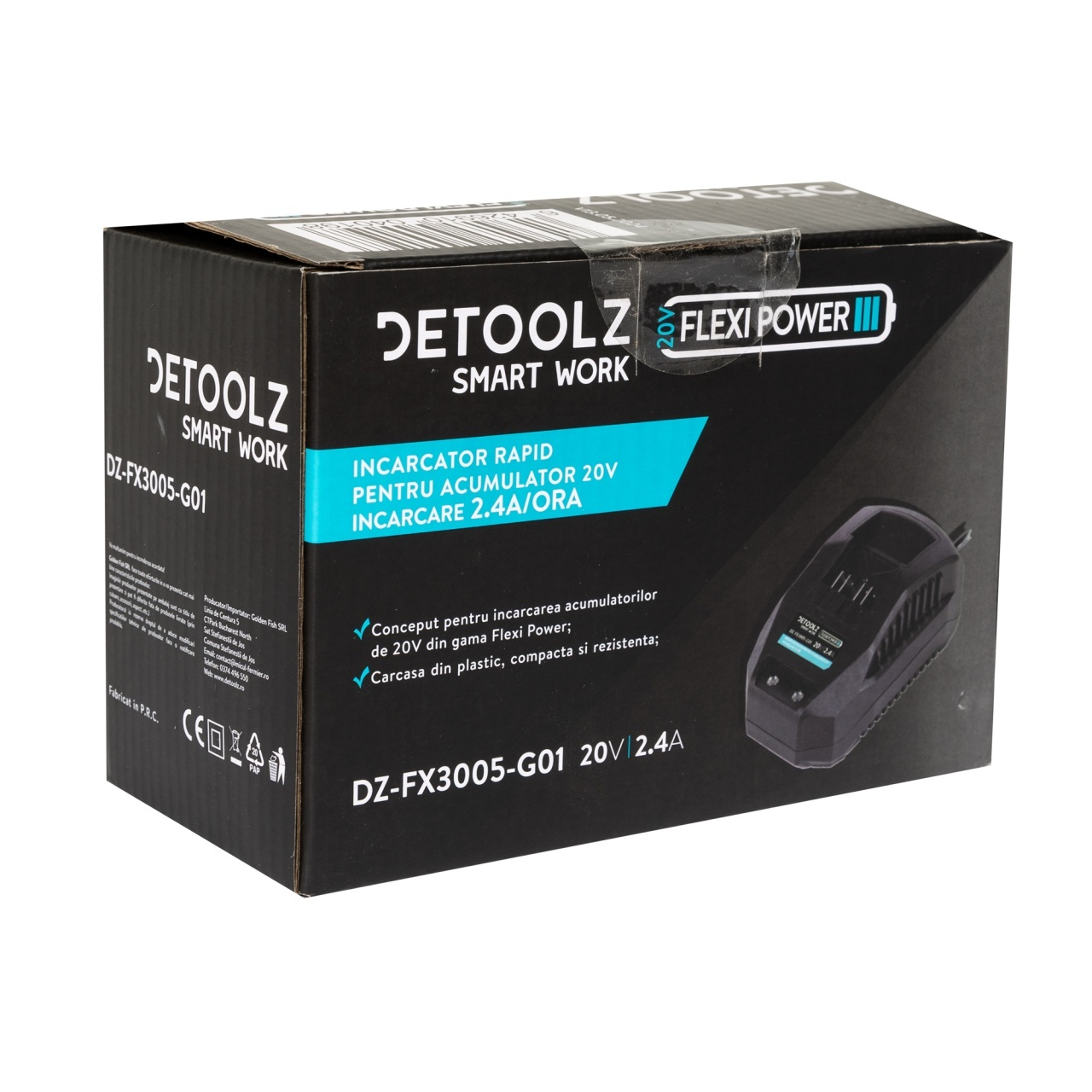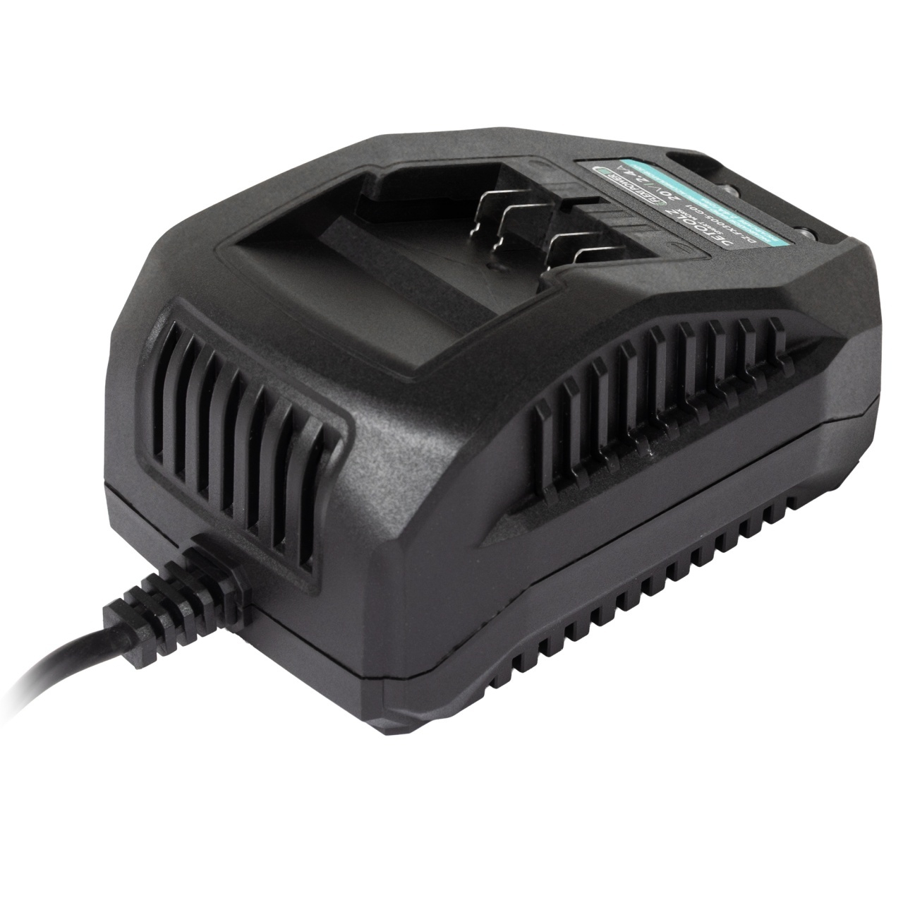 Încărcătorul DZ-FX3005-G01 (incarcator rapid pentru acumulator 20V, încărcare 2.4A/h) este conceput pentru încărcarea bateriilor litiu-ion din seria Detoolz - Flexi Power.