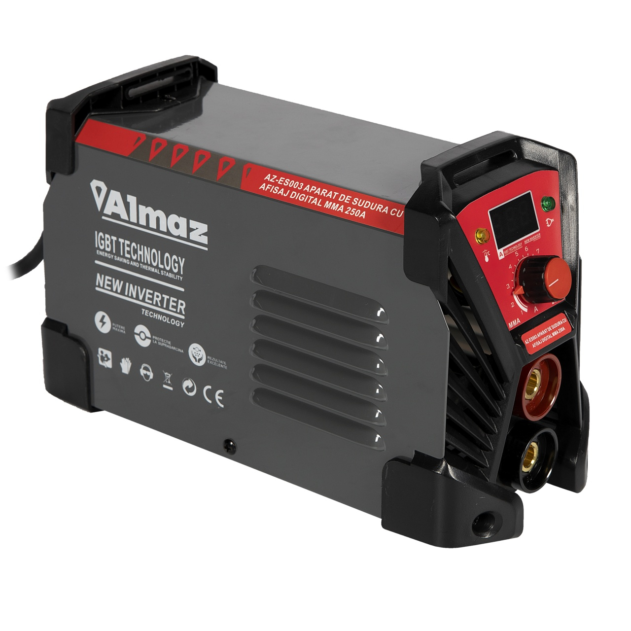 Aparat de sudură digital Almaz MMA 250 – Compact, eficient și ușor de utilizat! Aparatul de sudură Almaz MMA 250 (AZ-ES003) este un echipament modern, dotat cu afișaj digital și tehnologie INVERTOR IGBT, care asigură un control precis și o sudură stabilă. Construit pentru a oferi eficiență energetică ridicată, acest aparat este ușor de transportat și simplu de utilizat, fiind potrivit pentru sudarea MMA cu electrozi acoperiți. Caracteristici principale ✅ Tehnologie INVERTOR IGBT – dimensiuni compacte și consum redus de energie✅ Afișaj digital – indică parametrii de sudură pentru un control mai precis✅ Curent de sudură continuu – oferă stabilitate crescută și reducerea stropilor✅ Randament energetic ridicat – optimizează consumul și reduce pierderile de curent✅ Arc electric constant și stabil – facilitează sudura fără întreruperi✅ Tensiune înaltă la mersul în gol – aprindere rapidă a arcului electric✅ Portabilitate ridicată – greutate redusă și dimensiuni compacte pentru transport ușor✅ Compatibilitate cu electrozi bazici și supertit – potrivit pentru diverse aplicații✅ Funcționare la altitudini mari și în medii variate – ideal pentru utilizare în interior și exterior Utilizări recomandate ✔ Sudarea structurilor metalice – potrivit pentru lucrări de confecții metalice✔ Reparații și întreținere – ideal pentru ateliere și uz gospodăresc✔ Sudare MMA cu electrozi acoperiți – compatibil cu electrozi de diverse tipuri✔ Construcții și renovări – soluție eficientă pentru sudarea diverselor materiale Specificații tehnice 🔹 Tip sudură: MMA (Manual Metal Arc)🔹 Tensiune de alimentare: 220V ± 10%🔹 Curent de sudură: 30A - 250A🔹 Diametru electrod: 1.6 - 5.0 mm🔹 Afișaj: Digital🔹 Clasă de protecție: IP21S🔹 Clasă de izolație: F🔹 Greutate netă: 3.35 kg🔹 Dimensiuni: 30 x 20 x 23 cm Beneficii pentru utilizator ✔ Ușor de utilizat – operare intuitivă, potrivită pentru orice utilizator✔ Transport facil – datorită greutății reduse și designului ergonomic✔ Consum optimizat de energie – randament ridicat și pierderi minime✔ Protecție la suprasarcină și supraîncălzire – siguranță îmbunătățită în utilizare Atenție! ❌ Nu utilizați aparatul în condiții de umezeală excesivă❌ Nu suprasolicitați aparatul – respectați ciclul de funcționare❌ Asigurați-vă că zona de lucru este bine ventilată și lipsită de materiale inflamabile❌ Purtați echipament de protecție adecvat (mănuși, mască, ochelari de protecție, îmbrăcăminte ignifugă) Almaz MMA 250 – un aparat de sudură digital eficient și ușor de utilizat!