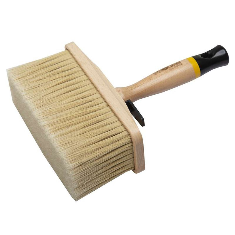 • Concepută pentru vopsirea cu orice tip de vopsele sau lacuri. Ideală pentru folosirea rapidă și eficientă pe suprafețe mari. Periile sunt fabricate din fibre sintetice PBT FAN SHAPE de cea mai bună calitate. Sunt caracterizate prin rezistență la abraziune, rupere, diverși compuși chimici sau radiații UV. Forma unică a periilor face aplicarea vopselei foarte eficientă. Acestea nu absorb apa și nu își pierd proprietățile în timpul lucrului. Corpul și mânerul sunt realizate din lemn de fag. Dispune de un cârlig practic care permite agățarea. Ambalajul din PVC a fost special conceput pentru a putea fi reutilizat pentru depozitarea pensulei (după spălarea și uscarea acestea).