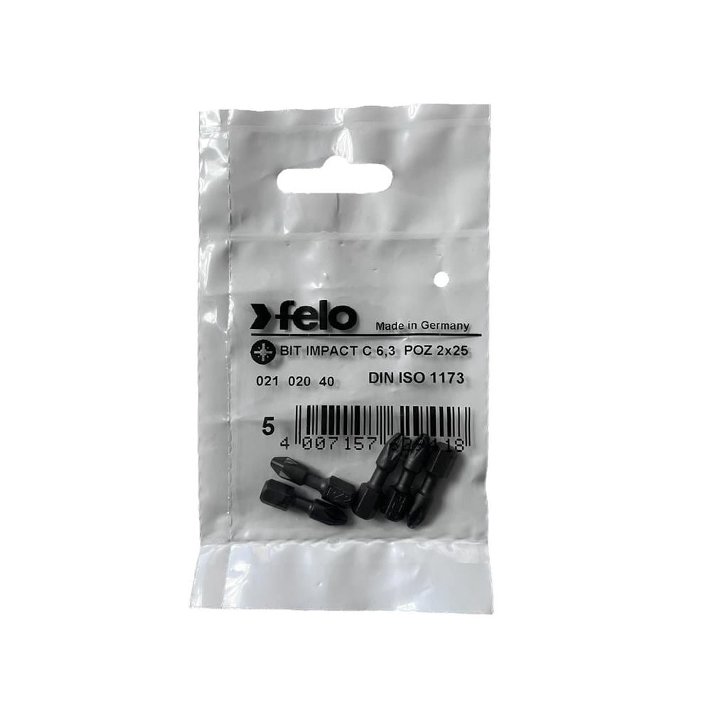Set 5 biti Felo, seria Impact profil Pozidrive, C6.3, PZ2, 25mm
