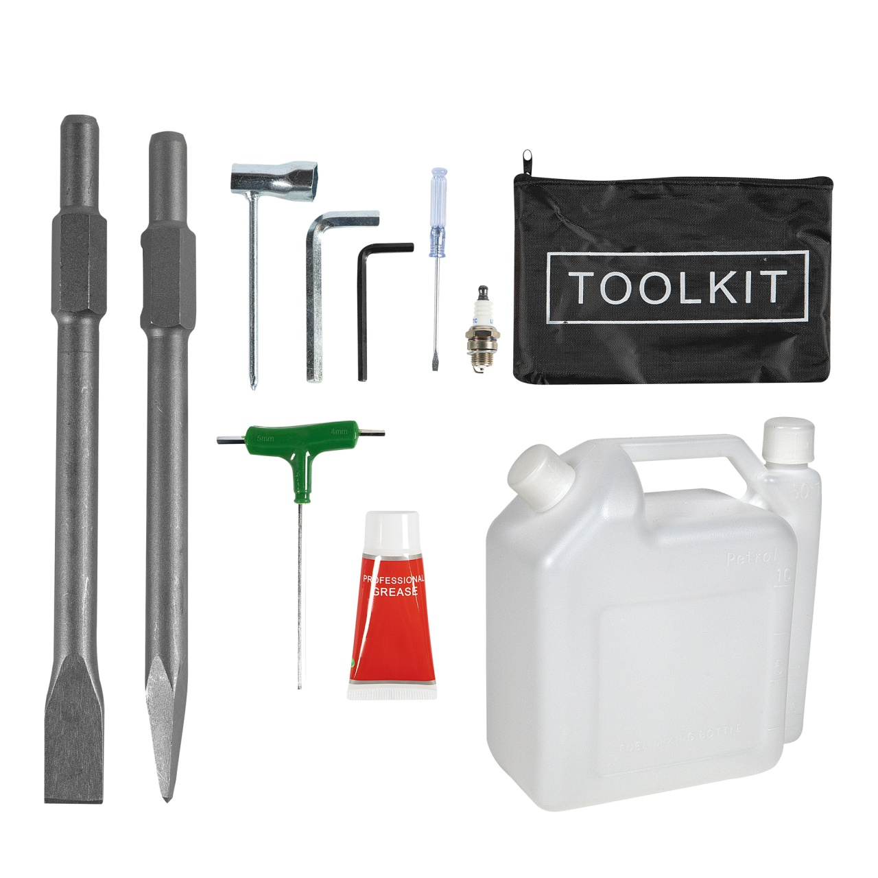 Demolatorul benzina 2 timpi, 52CC, 20-55J, 1500bpm, Detoolz DZ-C255 este un produs robust, eficient construit pentru lucrari dificile de demolare din casa si gradina (energie de impact 45J), cum ar fi: demolarea peretilor (partial sau total), indepartarea podelelor dar si indepartarea placajelor de perete. Demolatorul benzina 2 timpi, 52CC, 20-55J, 1500bpm, Detoolz DZ-C255, are urmatoarele caracteristici:• Constructie robusta, din materiale de fabricatie de cea mai buna calitate, rezistente pentru o durata de viata extinsa;• Ciocan de demolare puternic si usor;• Multifunctional - o singura masina pentru mai multe proiecte;• Vibratii reduse cu manerul principal amortizor de vibratii;• Maner suplimentar reglabil la 180° pentru lucru flexibil;• Performanta in demolare cu puterea de impact de 55 J;• Pregatit imediat de lucru cu daltele ascutita si plata furnizate;• Construit durabil si robust pentru lucru puternic si indelungat;• Mandrina din aliaj consolidata pentru o stabilitate crescuta a daltei;• Putere ridicata a produsului, configuratie la nivel industrial, performanta in utilizare foarte buna;• Produs cu raport pret/calitate excelent;• Consum redus de energie;• Trebuie folosit numai pentru destinatia pentru care a fost construit. Continut colet demolatorul benzina 2 timpi, 52CC, 20-55J, 1500bpm, Detoolz DZ-C255:• Demolator;• Lubrifiant;• Bidon pentru ulei;• Unsoare cilindrica;• Cheie hexagonala interioara 6 mm;• Cheie hexagonala interioara 8 mm;• Cheie hexagonala interioara M10;• Dalta ascutita;• Dalta plata;• Surubelnita;• Bujie;•Manual de instructiuni.