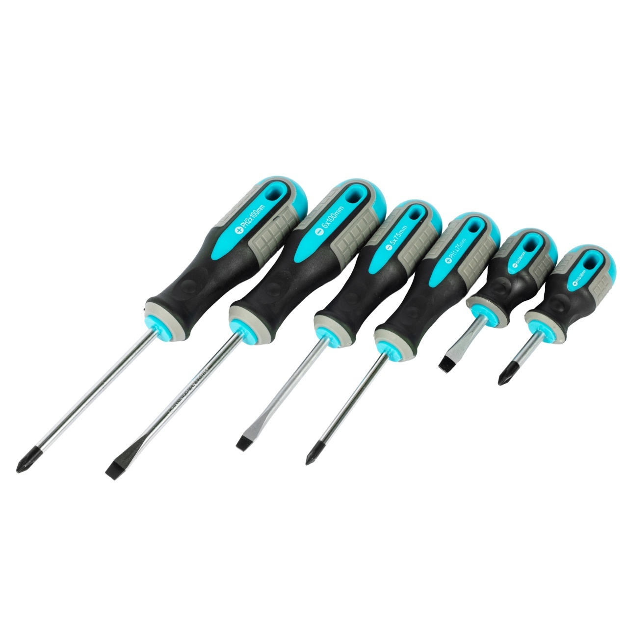 Set 6 surubelnite Detoolz:Dimensiuni: SL5x75mm SL6x100mm SL6x38mm PH1x75mm PH2x100mm PH2x38mm