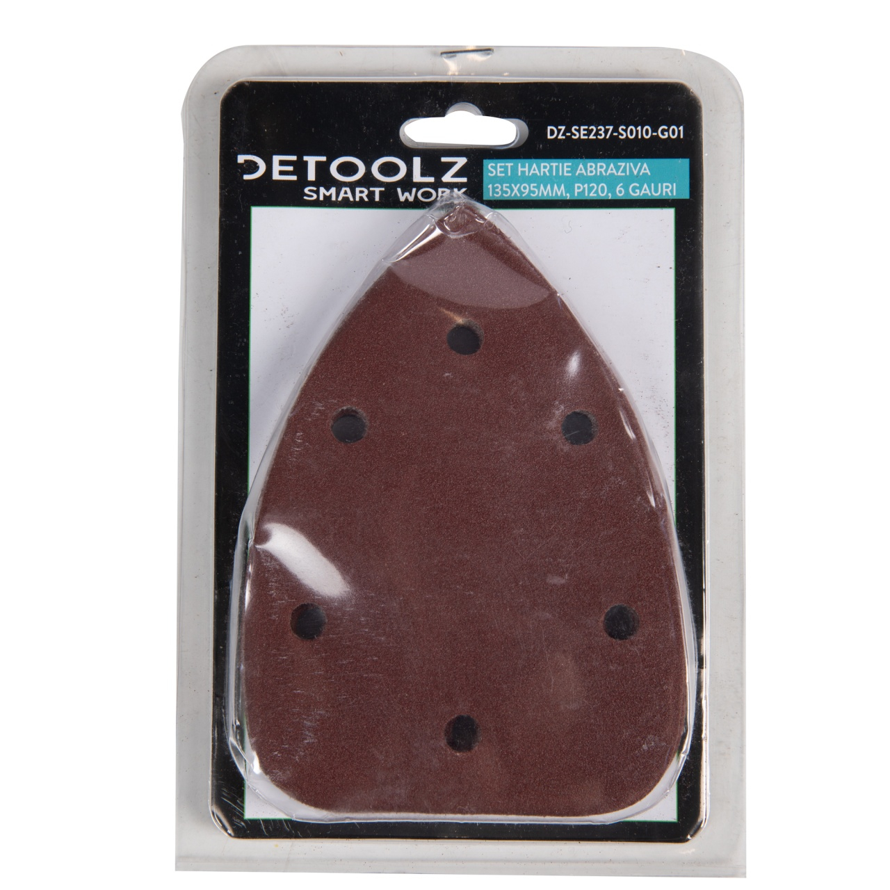 Set 10 bucati hartie abraziva, 135x95mm, P120, 6 gauri, Detoolz DZ-SE237-S010-G01
