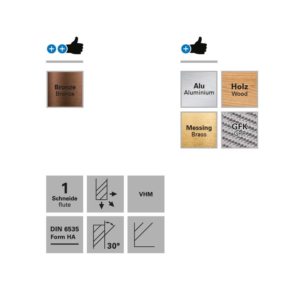 Pentru frezarea in metale neferoase dure, precum cuprul. Tratamentul de suprafata ALCRONA al frezelor ofera o durata mai mare de viata reducand uzura acestora. In anumite cazuri frezarea poate fi facuta fara sau cu o minima racire.