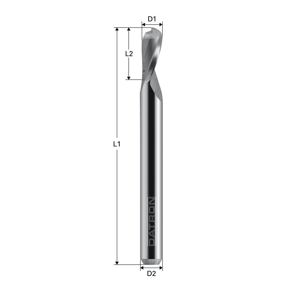 Frezele Datron cu o singura canelura sunt ideale pentru prelucrarea metalelor neferoase, adesea la viteze semnificativ mai mari, comparativ cu cele cu mai multe caneluri. Designul unic al muchiei de taiere, creeaza mai mult spatiu pentru evacuarea materialului frezat, permitand viteze mai mari de avans si incarcaturi mai mari cu material aschiat.  Aceste freze au o durata mai lunga de viata, sunt fabricate din microcarburi, sunt disponibile in diferite diametre si lungime de taiere, diferite diametre ale axului de prindere si geometrii diferite pentru aplicatii speciale.