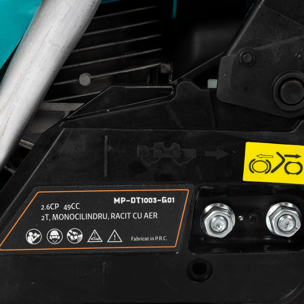 Drujba Micul Padurar 4900, capacitate cilindrica 49cc, 2.6 CP, 1 lant 16" + 1 lama, pornire rapida Putere și eficiență pentru orice lucrare de tăiere! Drujba Micul Pădurar 4900 MP-DT1003-G01 este un echipament fiabil, ideal pentru gospodării, livezi și terenuri împădurite. Cu un motor puternic de 2.6CP și 49CC, această drujbă oferă performanță optimizată, consum redus de carburant cu până la 30% și emisii scăzute cu până la 50%. Este concepută pentru utilizare ocazională și întreținerea vegetației, însă nu este recomandată pentru exploatări industriale. Caracteristici principale ✅ Motor puternic de 2.6CP / 1.9kW – asigură eficiență ridicată în tăiere✅ Capacitate cilindrică de 49CC – optimizată pentru utilizare gospodărească✅ Lungime lamă de 16” (40cm) – ideală pentru tăierea lemnului de esență moale și tare✅ Aprindere electronică CDI – pornire fiabilă și ușoară✅ Sistem automat de ungere a lanțului – protejează și prelungește durata de viață a lanțului✅ Demaror Easy Start – pornire rapidă, fără efort✅ Pompă de amorsare – permite alimentarea directă a carburatorului pentru o pornire ușoară✅ Sistem anti-vibrații – confort sporit și reducerea oboselii în utilizare✅ Sistem de siguranță avansat – frână de lanț și protecție anti-recul pentru o utilizare în siguranță Utilizări recomandate ✔ Tăierea lemnelor pentru foc – ideală pentru gospodării și ferme✔ Curățarea livezilor și întreținerea pădurilor – pentru tăieri precise și rapide✔ Lucrări de fasonare a lemnului – perfectă pentru utilizare ocazională✔ Întreținerea spațiilor verzi – potrivită pentru tăieri de crengi și vegetație densă 📌 Specificații tehnice 🔹 Model: MP-DT1003-G01🔹 Tip motor: 2 timpi, monocilindru, răcit cu aer🔹 Putere maximă: 2.6CP / 1.9kW🔹 Capacitate cilindrică: 49CC🔹 Sistem de pornire: Easy Start, pornire manuală la sfoară🔹 Tip aprindere: CDI🔹 Turație maximă: 8.500 ±500 rpm🔹 Combustibil: Amestec benzină/ulei – raport 25:1🔹 Capacitate rezervor combustibil: 550 ml🔹 Capacitate rezervor ulei lanț: 260 ml🔹 Lungime lamă: 16"🔹 Nivel zgomot: 112 dB🔹 Greutate netă: 5.5 kg Beneficii pentru utilizator ✔ Design robust și fiabilitate ridicată – rezistență crescută la uzură✔ Sistem de amortizare a vibrațiilor – reduce oboseala operatorului✔ Consum redus de carburant – economie de combustibil pentru utilizare îndelungată✔ Siguranță îmbunătățită – protecție împotriva reculului și frână de lanț activă✔ Întreținere ușoară – acces facil la componente pentru curățare și reglaj Recomandări pentru utilizare Înainte de prima utilizare, citiți manualul de utilizare pentru o funcționare sigură și corectă.Nu utilizați drujba pentru lucrări industriale sau exploatări forestiere intense.Evitați utilizarea în condiții de umiditate ridicată sau lângă surse de foc.Pentru o durată de viață îndelungată și performanță maximă, respectați instrucțiunile de întreținere!Drujba Micul Pădurar 4900 49CC 2.6CP – partenerul ideal pentru orice provocare!
