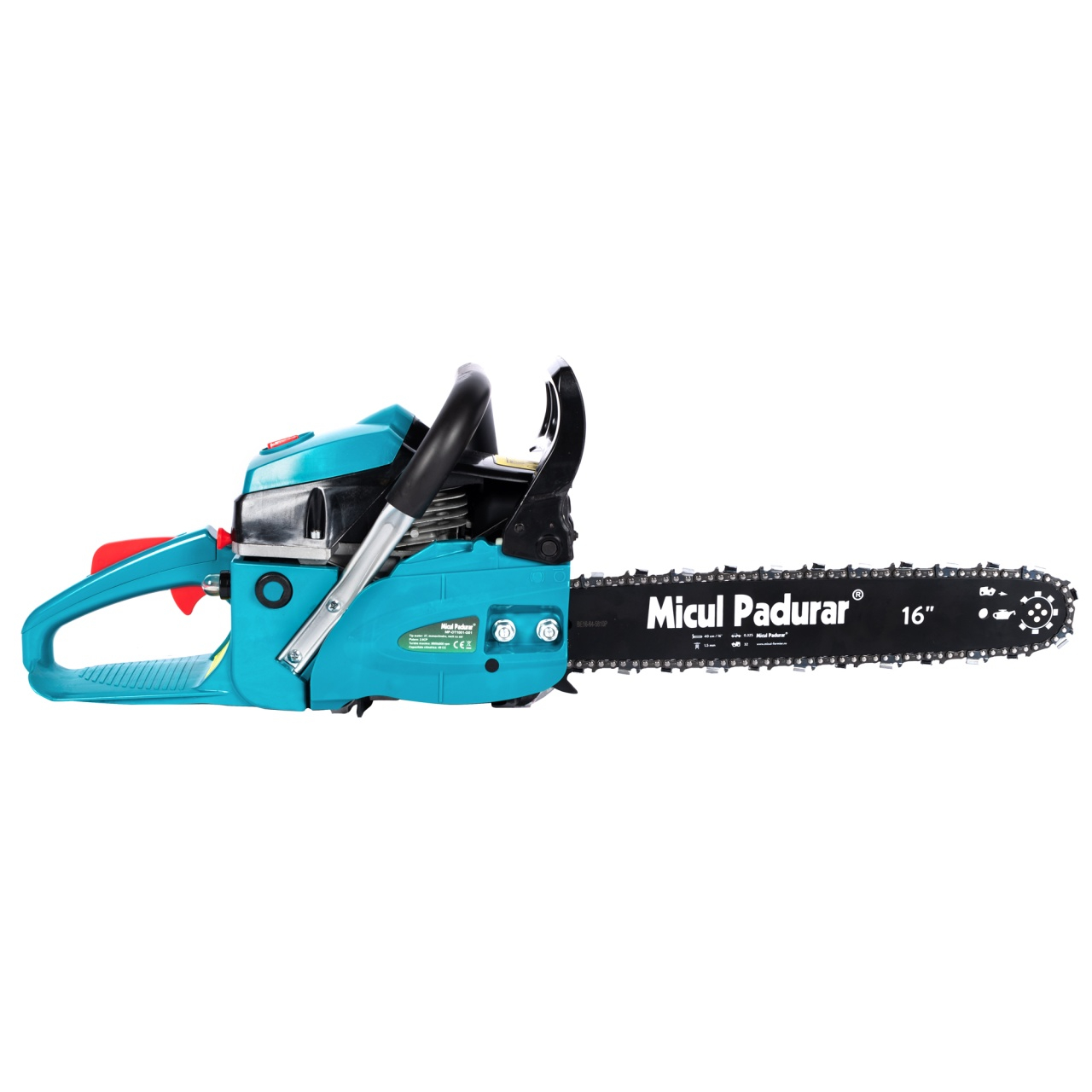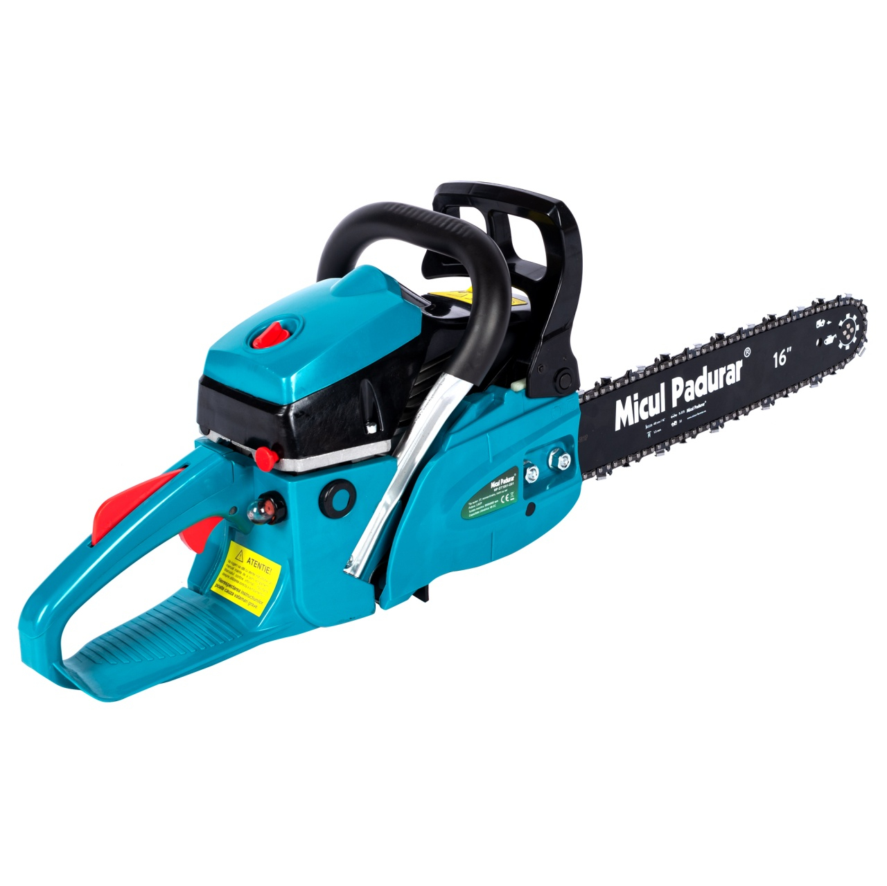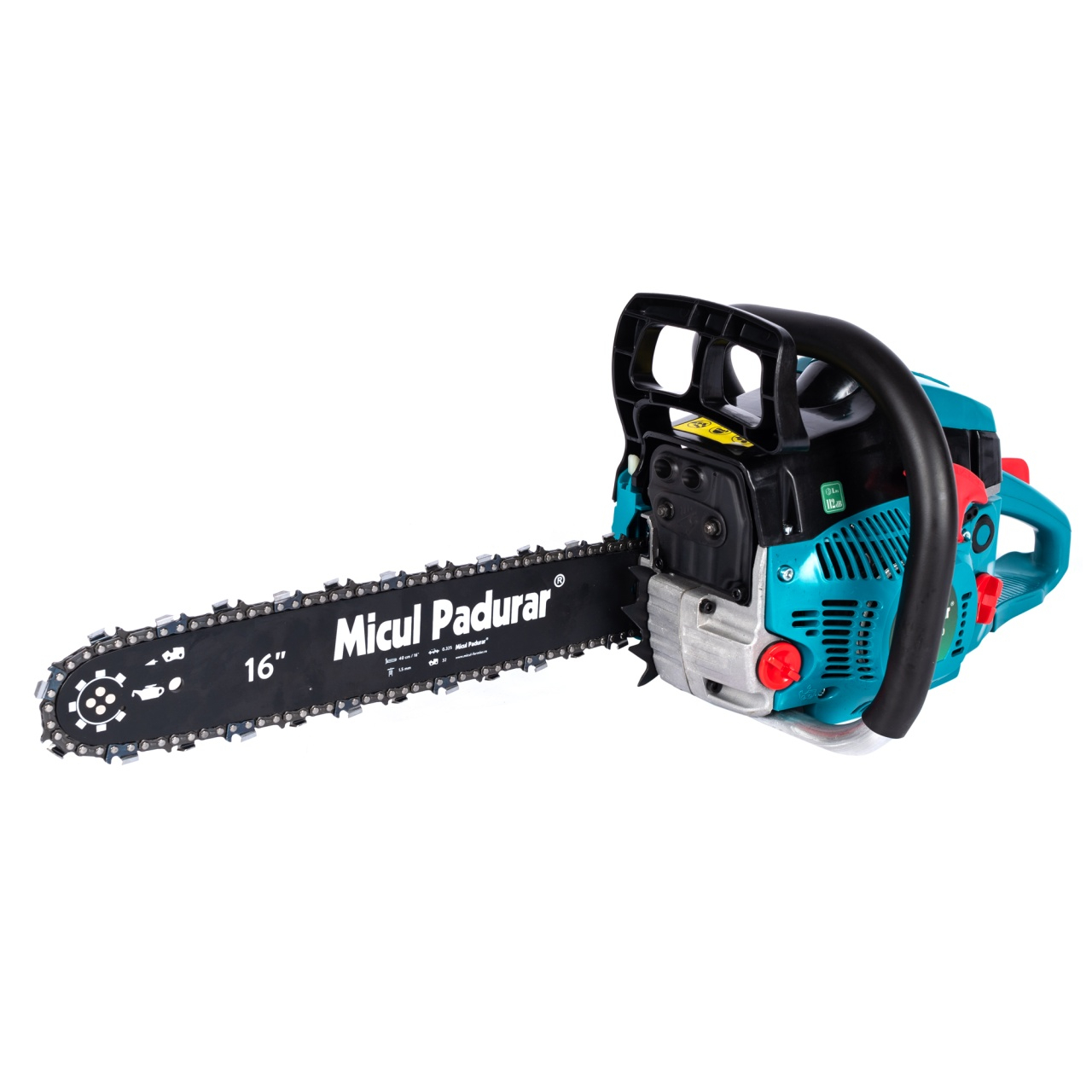 Drujba Micul Padurar 4900XC, capacitate cilindrica 49cc, 2.6 CP, 1 lant 16" + 1 lama, pornire rapida Putere și eficiență pentru orice lucrare de tăiere! Drujba Micul Pădurar 4900 MP-DT1001-G01 este un echipament fiabil, ideal pentru gospodării, livezi și terenuri împădurite. Cu un motor puternic de 2.6CP și 49CC, această drujbă oferă performanță optimizată, consum redus de carburant și emisii scăzute. Este concepută pentru utilizare ocazională și întreținerea vegetației, însă nu este recomandată pentru exploatări industriale. Caracteristici principale ✅ Motor puternic de 2.6CP / 1.9kW – asigură eficiență ridicată în tăiere✅ Capacitate cilindrică de 49CC – optimizată pentru utilizare gospodărească✅ Lungime lamă de 16” (40cm) – ideală pentru tăierea lemnului de esență moale și tare✅ Aprindere electronică CDI – pornire fiabilă și ușoară✅ Sistem automat de ungere a lanțului – protejează și prelungește durata de viață a lanțului✅ Demaror Easy Start – pornire rapidă, fără efort✅ Pompă de amorsare – permite alimentarea directă a carburatorului pentru o pornire ușoară✅ Sistem anti-vibrații – confort sporit și reducerea oboselii în utilizare✅ Sistem de siguranță avansat – frână de lanț și protecție anti-recul pentru o utilizare în siguranță Utilizări recomandate ✔ Tăierea lemnelor pentru foc – ideală pentru gospodării și ferme✔ Curățarea livezilor și întreținerea pădurilor – pentru tăieri precise și rapide✔ Lucrări de fasonare a lemnului – perfectă pentru utilizare ocazională✔ Întreținerea spațiilor verzi – potrivită pentru tăieri de crengi și vegetație densă Beneficii pentru utilizator ✔ Design robust și fiabilitate ridicată – rezistență crescută la uzură✔ Sistem de amortizare a vibrațiilor – reduce oboseala operatorului✔ Consum redus de carburant – economie de combustibil pentru utilizare îndelungată✔ Siguranță îmbunătățită – protecție împotriva reculului și frână de lanț activă✔ Întreținere ușoară – acces facil la componente pentru curățare și reglaj Recomandări pentru utilizare Înainte de prima utilizare, citiți manualul de utilizare pentru o funcționare sigură și corectă.Nu utilizați drujba pentru lucrări industriale sau exploatări forestiere intense.Evitați utilizarea în condiții de umiditate ridicată sau lângă surse de foc.Pentru o durată de viață îndelungată și performanță maximă, respectați instrucțiunile de întreținere!Drujba Micul Pădurar 4900 49CC 2.6CP – partenerul ideal pentru orice provocare!