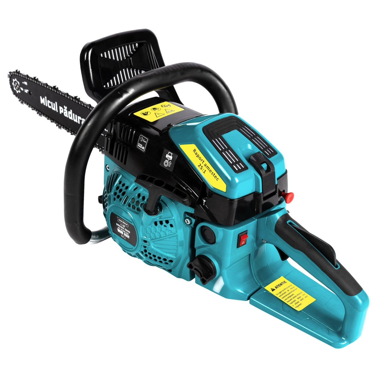 Drujba Micul Pădurar, model MP-DT1002-G01, este un produs de calitate, conceput cu tehnologii moderne ce oferă performanțe apropiate de cele ale utilajelor profesionale utilizate în regim industrial. Motorul robust este bazat pe o tehnologie avansată care reduce emisiile cu până la 50% și consumul de carburant cu până la 30%. Această drujbă reprezintă soluția ideală pentru proprietarii de livezi, terenuri împădurite sau pentru cei care au nevoie de un echipament fiabil pentru lucrări ocazionale de tăiere a vegetației. Nu este recomandată pentru utilizare intensivă în regim industrial sau pentru volume mari de tăieri zilnice. Caracteristici principale: O alegere practică și eficientă pentru gospodărie Aprindere electronică Sistem de ungere automată Demaror Easy Start pentru pornire rapidă Pompă de amorsare pentru alimentarea directă a carburatorului Buton Pornire/Oprire tip întrerupător electric