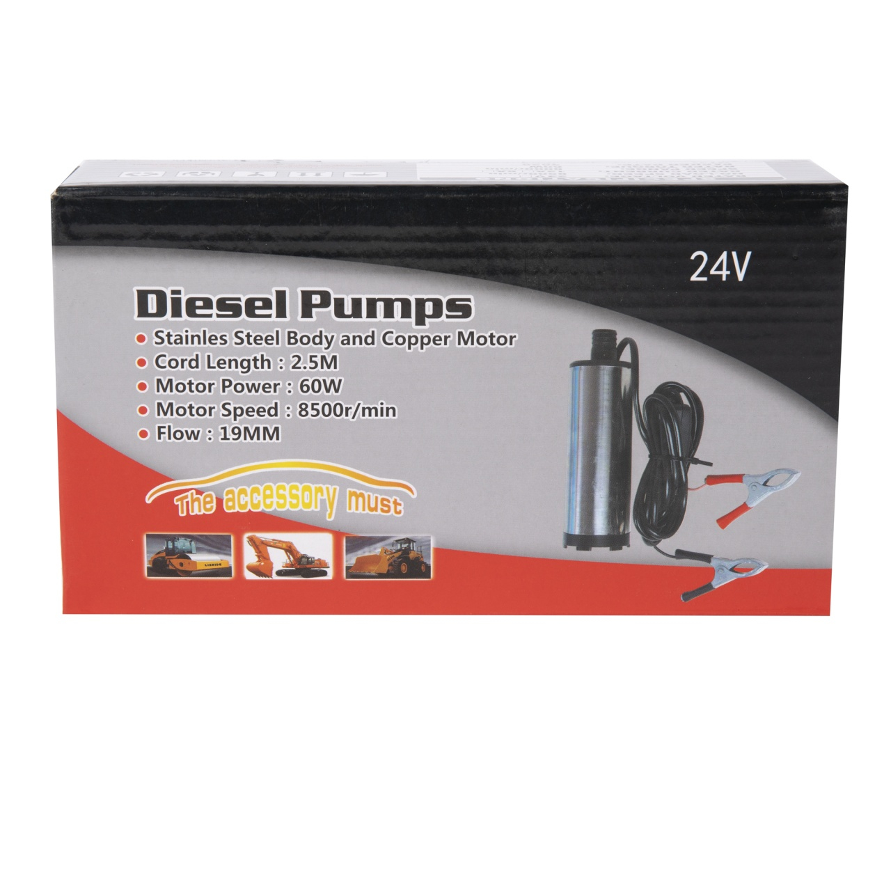 Pompa cu actionare electrica pentru transferul lichidelor (motorina/ ulei si lichide alimentare).Caracteristici pompa motorina 24V, Micul Fermier GF-0390:•Este foarte utila datorita dimensiunilor sale compacte;•Are corpul din inox si bobinaj Cu;•Asigura transferul de lichide intre diferite recipiente;•Usor de folosit - se alimenteaza pompa la bornele bateriei (24V), se introduce pompa in fluid, furtunul in recipient si se actioneaza butonul de pornire pentru a extrage lichidul.Se livreaza amabalata individual si in numar de 50 buc pentru box-carton; greutatea este de 500 g per buc.