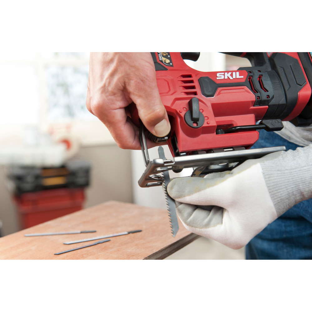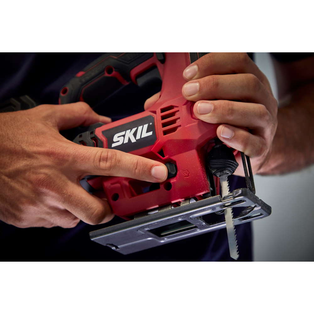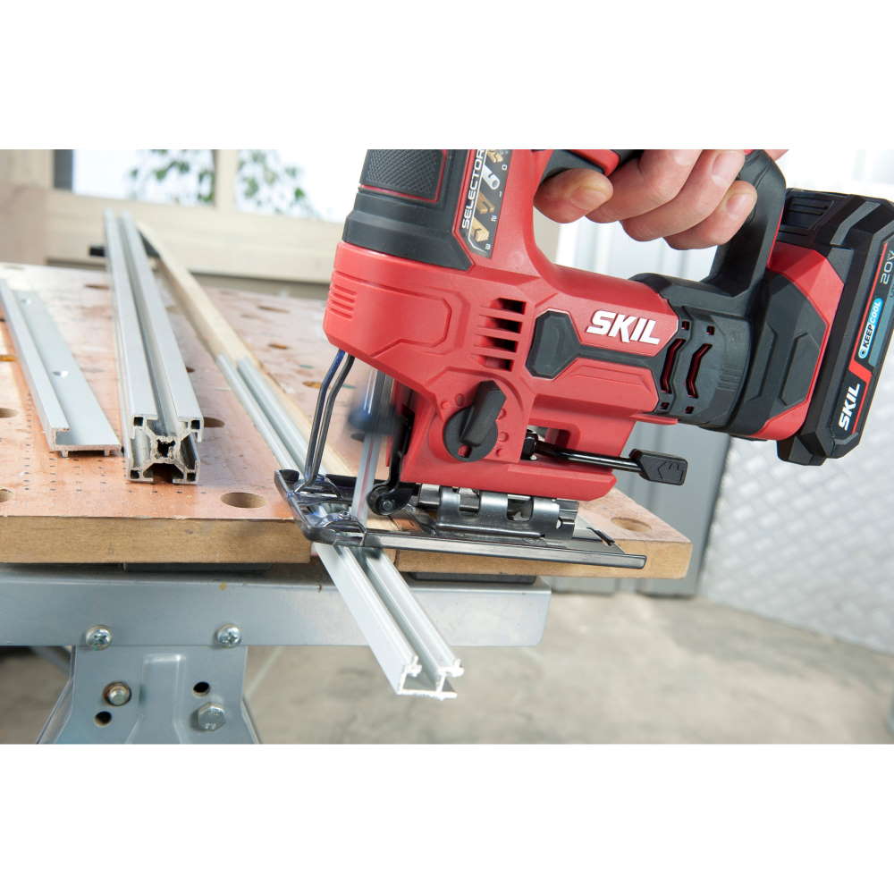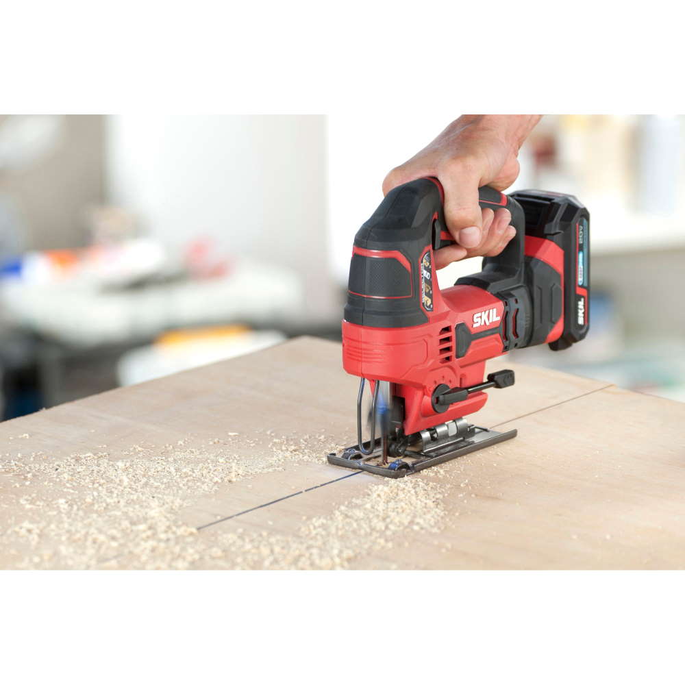 Pendulare cu acumulator SKIL 3420, „20V Max“ (18 V), este extrem de potrivit pentru tăierea precisă a tăieturilor curbate şi drepte. Spotul luminos LED asigură buna vizibilitate a zonei de lucru. Selector de material cu patru setări vă dă posibilitatea să găsiţi întotdeauna viteza potrivită pentru lucrare. Cu comutatorul de variaţie de viteză puteţi utiliza această pendulare, pentru rezultate optime în lucrul cu diverse materiale. Sistemul fără unelte „Clic“ permite schimbarea rapidă a pânzelor de ferăstrău fără folosirea unor scule. Alte caracteristici utile includ suflantă de praf care oferă o vedere clară a piesei dvs. de lucru şi placa de bază reglabilă fără cheie, care permite tăieturi la 45°. Pentru asigurarea curăţeniei locului de munca, cele mai multe aspiratoare casnice uzuale se pot conecta la adaptorul de aspirare. Mai mult, designul ergonomic cu mâner moale asigură un plus de confort la lucru. SKIL 3420 AA este livrată cu un acumulator „20V Max“ (18 V) 2,5 Ah „Keep Cool“ şi un încărcător „Rapid“, trei pânze de ferăstrău pentru lemn, două pânze de ferăstrău pentru metal şi un adaptor pentru aspirator.