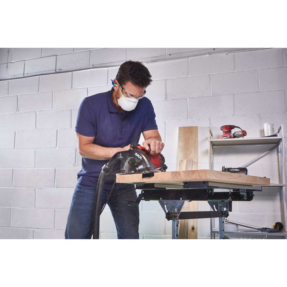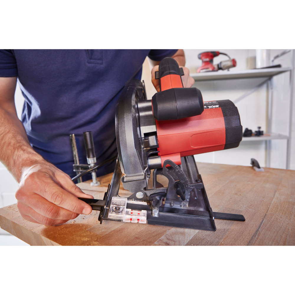 Circular de mână SKIL 5830 are un motor puternic de 1400 W pentru tăierea rapidă şi precisă până la o profunzime de 66 mm, care este ideal pentru materialele dvs. DIY, precum scândurile şi grinzile. Placa de bază reglabilă permite efectuarea tăierilor într-un unghi maxim de 52°. Un vizor pentru linia de tăiere este ataşat pentru urmărirea precisă a liniei marcate. Pentru asigurarea curăţeniei locului de munca, cele mai multe aspiratoare casnice uzuale se pot conecta la adaptorul de aspirare. Alte caracteristici utile includ suflantă de praf care oferă o vedere clară a piesei dvs. de lucru şi blocajul axului pentru a schimba uşor pânza. Pentru durabilitate, acest circular de mână este echipat cu rulmenți etanșeizați. Rulmenţii etanşeizaţi protejează ferăstrăul de praf, crescând durata de viaţă. Mai mult, acest circular de mână are mânere ergonomice moi, care asigură un control optim şi confort de lucru. SKIL 5830 GA este furnizat cu doua pânze de ferăstrău cu vârf de carbură cu 24 dinţi, un ghidaj paralel şi un adaptor pentru aspirator.