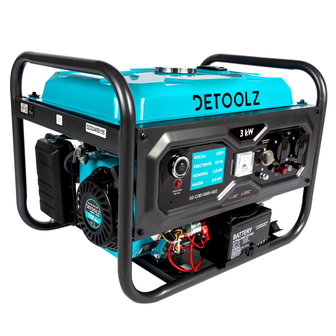 Generatorul DZ-C287-S001-G02 vine in sprijinul dumneavoastra si este destinat uzului personal pentru alimentarea cu energie electrica uneltelor electrice si surselor de iluminare care prevad o functionare la o sursa de tensiune alternativa de 230V sau tensiune continua 12Vcc. In cazul aparatelor casnice va rugam sa verificati compatibilitatea pe baza datelor producatorului referitoare la puterea aparatelor conectate sa fie sub puterea maxima dezoltata de generator.Generatorul DZ-C287-S001-G02 are urmatoarele avantaje:• Perioadă lungă de funcționare continuă.• Putere ridicată a produsului, performanța în utilizare foarte bună.• Portabil și compact• Rezultă o economie excelentă de combustibil, un nivel redus de emisii și o durată de lungă de funcționare.• Construit din materiale de fabricație de cea mai bună calitate, ușoare și rezistente pentru o durată de viață extinsă.