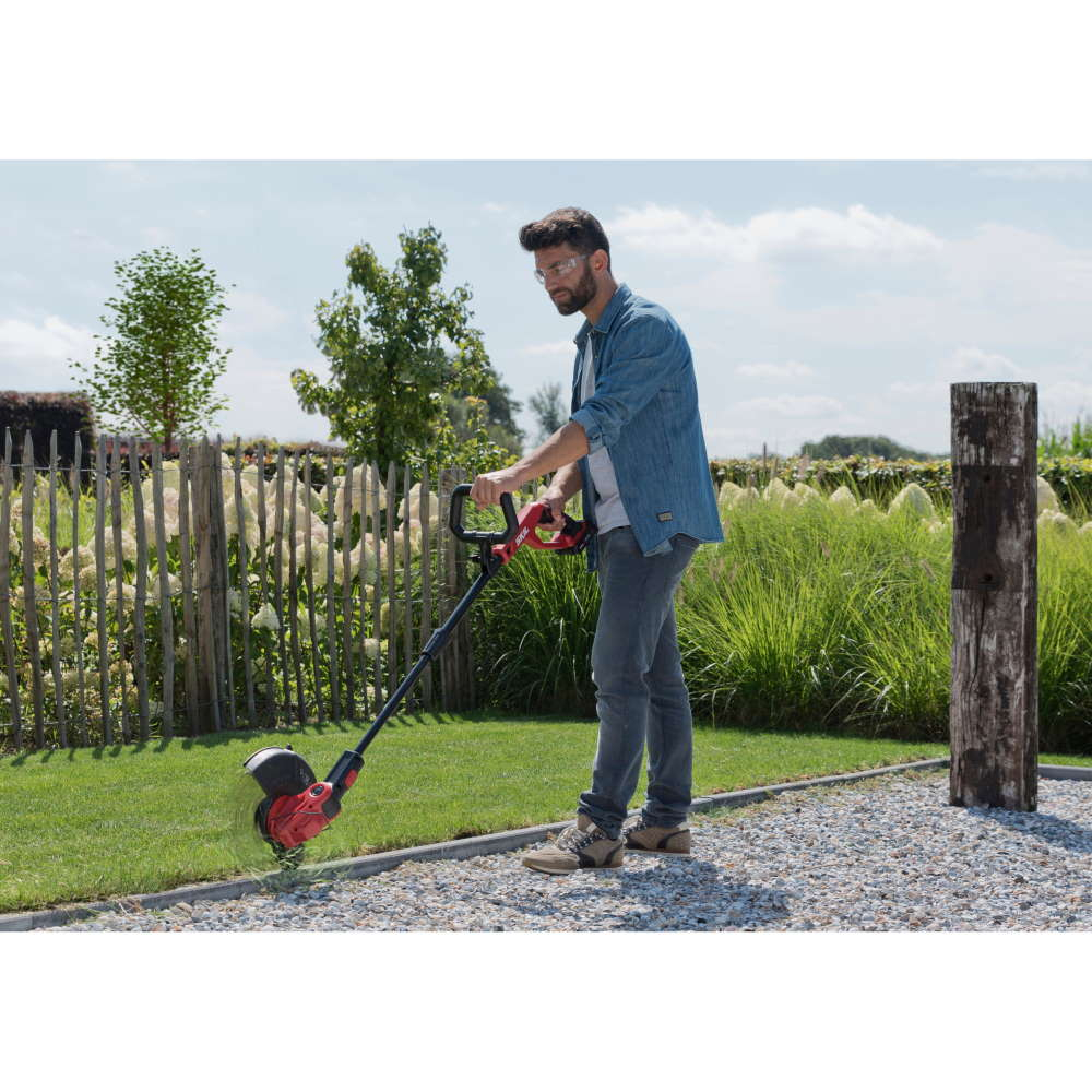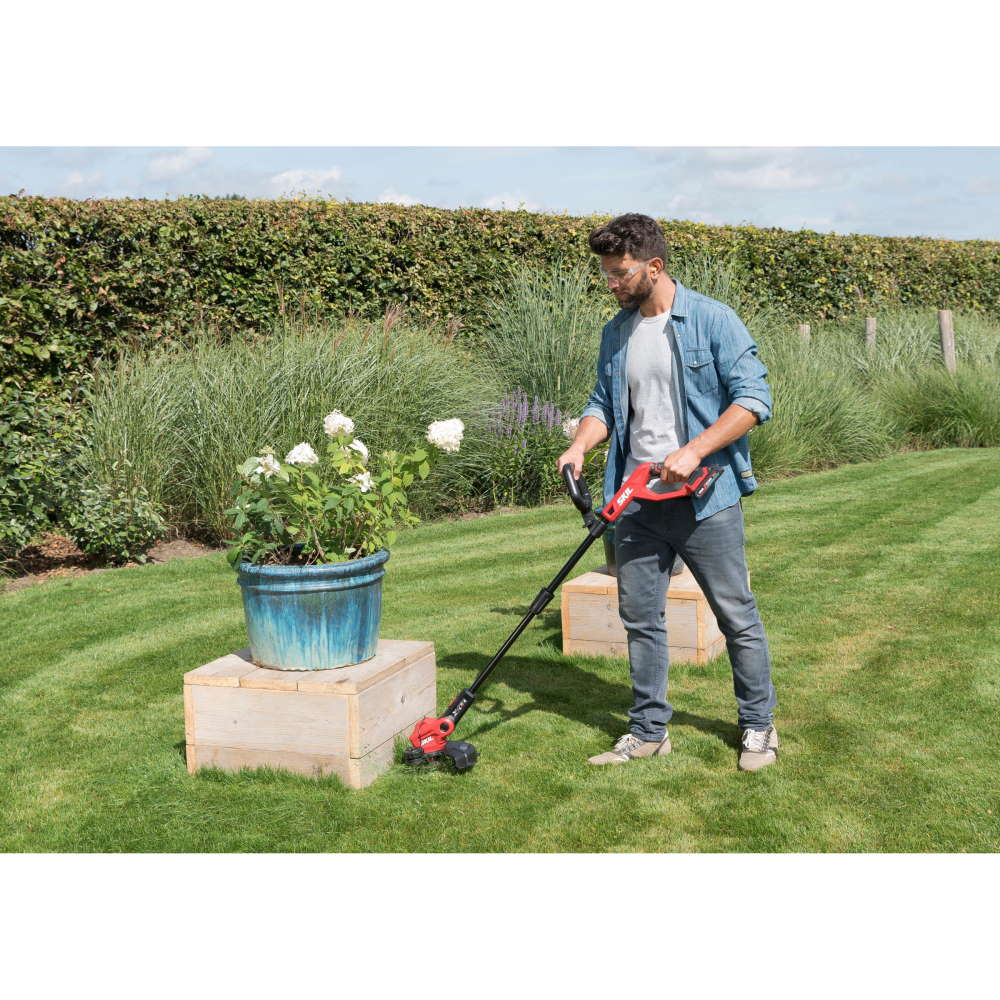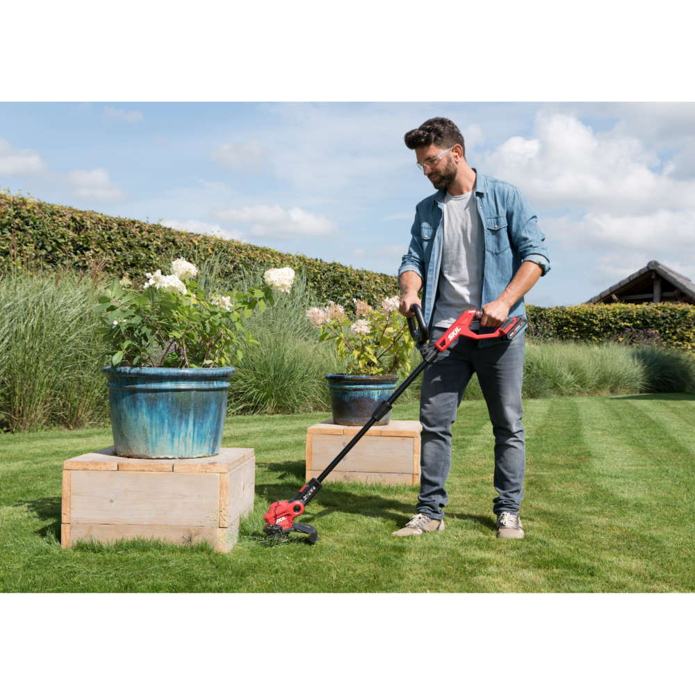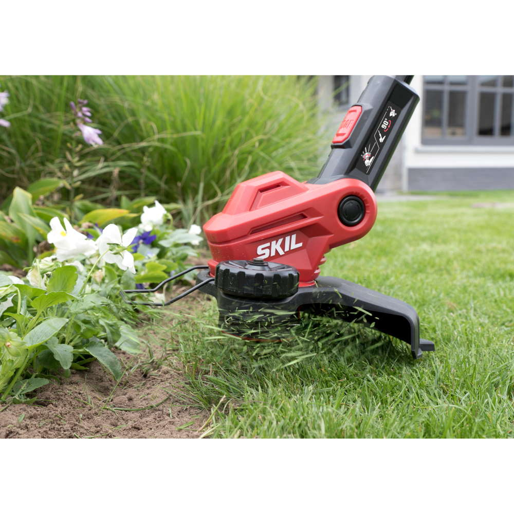 „20V Max” (18 V) SKIL 0230 este o coasă electrică puternică cu acumulator, cu lăţime de lucru de 25 cm, pentru cosire şi tăierea muchiilor fără efort de-a lungul marginilor şi aleilor. Avansarea automată a firului elimină necesitatea de manevrare manuală şi permite cosirea neîntreruptă a ierbii crescute excesiv de lângă pereţi, garduri şi straturile de flori sau ajustarea marginilor gazonului. Capul coasei electrice poate fi pivotat în mai multe poziţii, funcţie utilă în cazul lucrărilor desfăşurate în zone greu accesibile. Pentru a maximiza confort de lucru, această coasă electrică cu acumulator are un mâner telescopic reglabil, precum şi un mâner frontal reglabil; prin urmare, fiecare utilizator poate să-şi găsească poziţia corectă de lucru. În plus, această coasă electrică permite cosirea cu precizie datorită sistemului de protecţie a florilor; prin urmare, nu trebuie să vă faceţi griji în ceea ce priveşte starea plantelor şi a florilor din grădină. Datorită designului „Easy Storage” exclusiv al uneltei SKIL, aceasta necesită un spaţiu minim de depozitare după terminarea lucrului. SKIL 0230 CA este prevăzut cu o un sistem de înfăşurare şi un cârlig „Easy Storage”. Acumulatorul nu este inclus.