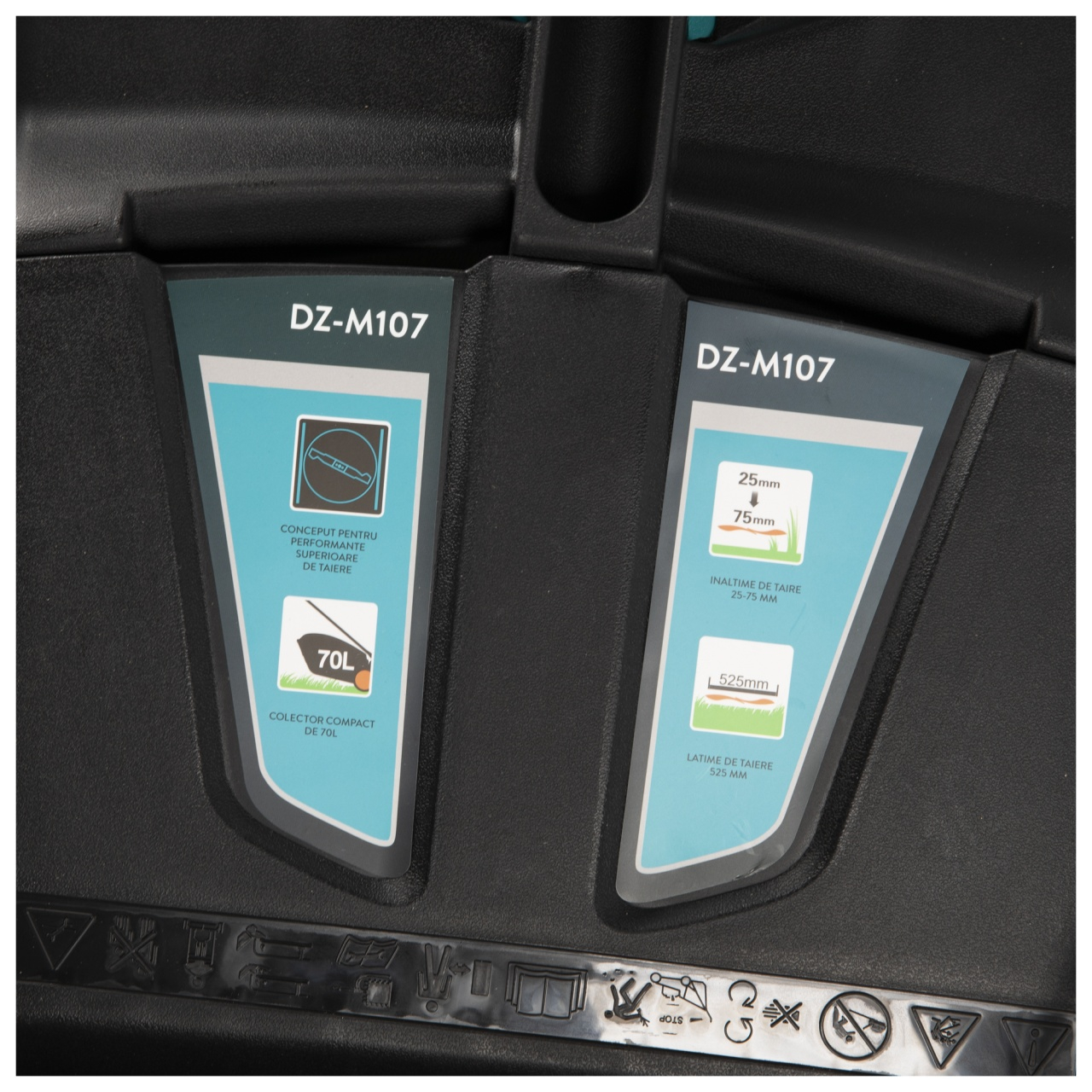 Masina de tuns gazon Detoolz, 5CP, 196cc, latime de taiere 53cm, colector 70L, propulsie automata este un produs robust, eficient construit pentru tunderea ierbii.Masina de tuns gazonul pe benzina 21", 196CC, 70L, Detoolz DZ-M107 are urmatoarele caracteristici:• Constructie robusta, din materiale de fabricatie de cea mai buna calitate, rezistente pentru o durata de viata extinsa.• La acest model, inaltimea de taiere este cuprinsa intr 25-70 mm.• Are patru functii: colectare, evacure in spate, lateral si mulcire.• Este usor de utilizat si intretinut.• Performanta ridicata a motorului.• Debit optim de aer pentru maximizare prindere fir iarba.• Rotile mari si inalte fac cosirea usoara.• Permite reglarea inaltimii - eficienta reglarea inaltimii de taiere cu maner central - 7 trepte.• Cutie de colectare cu maner - manerul integrat de pe cutia de colectare o face foarte usoara pentru a introduce, scoate si goli.Continut colet Masina de tuns gazonul pe benzina 21", 196CC, 70L, Detoolz DZ-M107:• Masina de tuns gazonul, model DZ-M107;• Retinator;• Jgheab de descarcare laterala;• Manual de instructiuni.