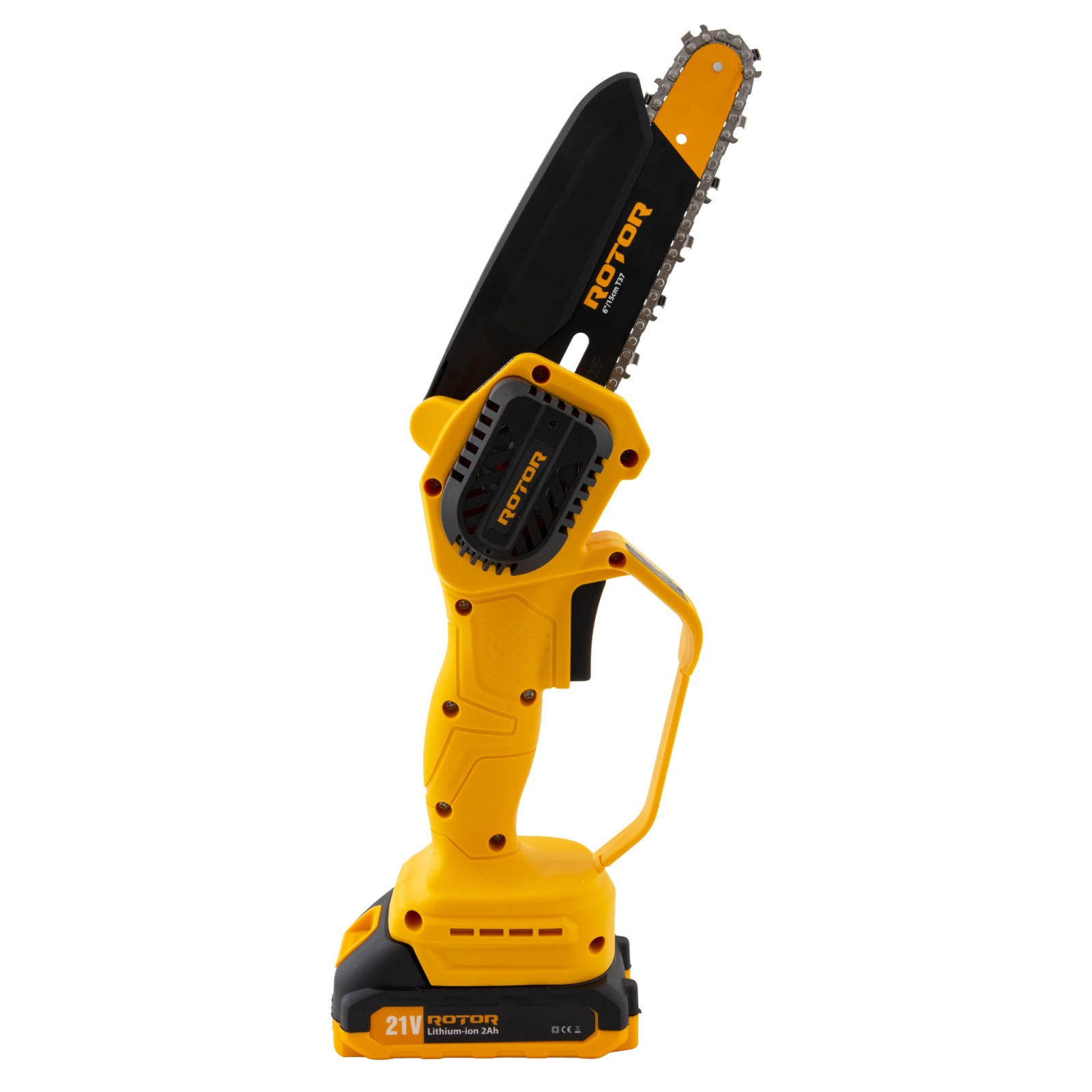Mini drujba ROTOR RBS-62 este un utilaj compact și performant, ideal pentru lucrări de grădinărit, întreținere a gospodăriei sau activități de bricolaj unde este nevoie de precizie și mobilitate. Alimentată de un acumulator 21V / 2.0Ah și echipată cu un motor cu perii, aceasta asigură o putere constantă de 300 W și o durată de viață îndelungată, cu pierderi minime de energie.