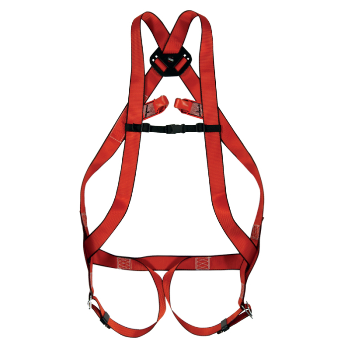 • Cârlig dorsal din spate sub forma unei cleme metalice. Două cârlige textile în față. Curea piept reglabilă și curele pentru coapse.