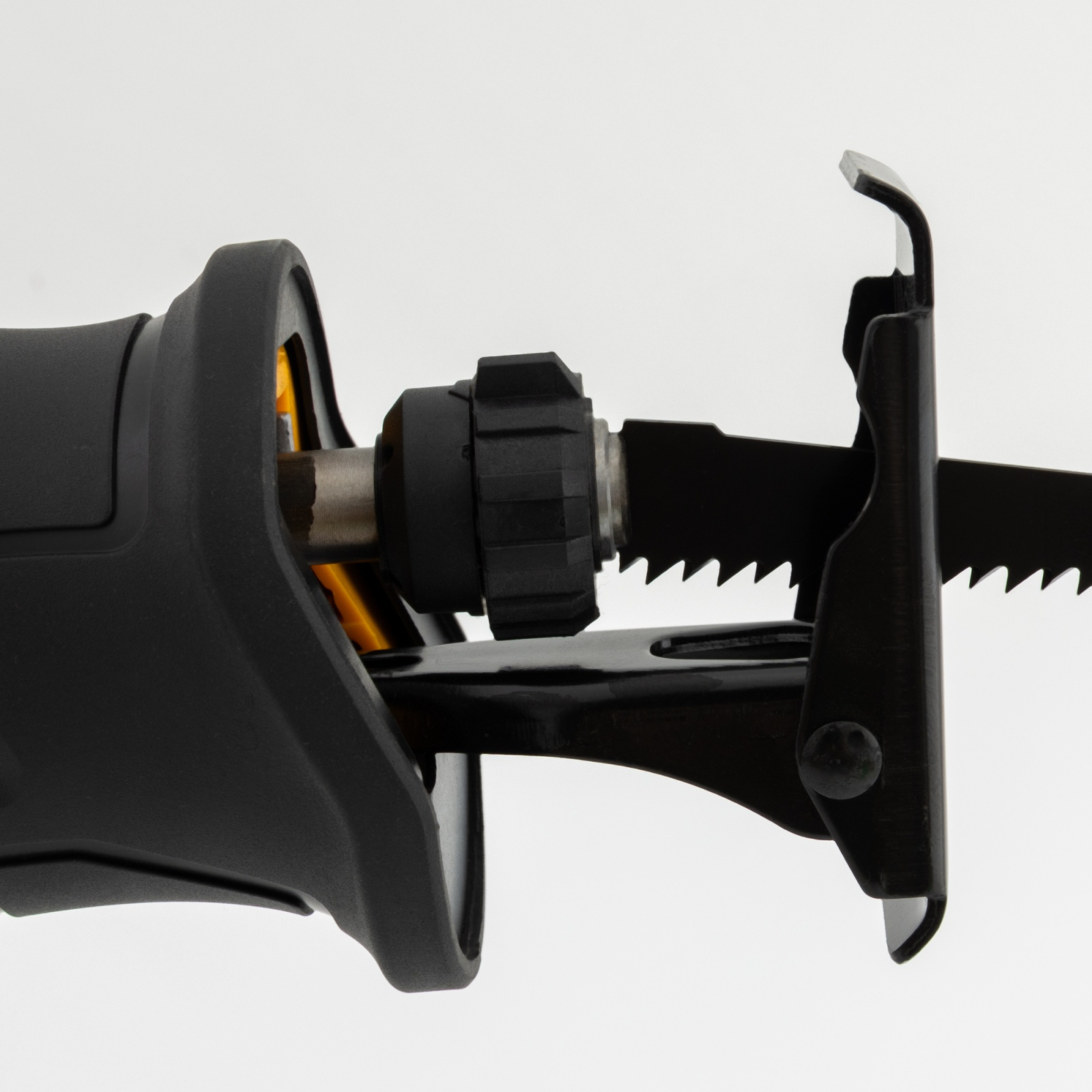 Talpa de ghidaj este pivotantă, asigurând un contact ferm pe suprafețe neregulate pentru un control superior și tăieturi mai curate. Mai mult, sistemul de prindere rapidă permite schimbarea pânzelor instantaneu, fără a necesita alte unelte, astfel încât poți trece de la tăierea lemnului la cea a metalului în doar câteva momente.