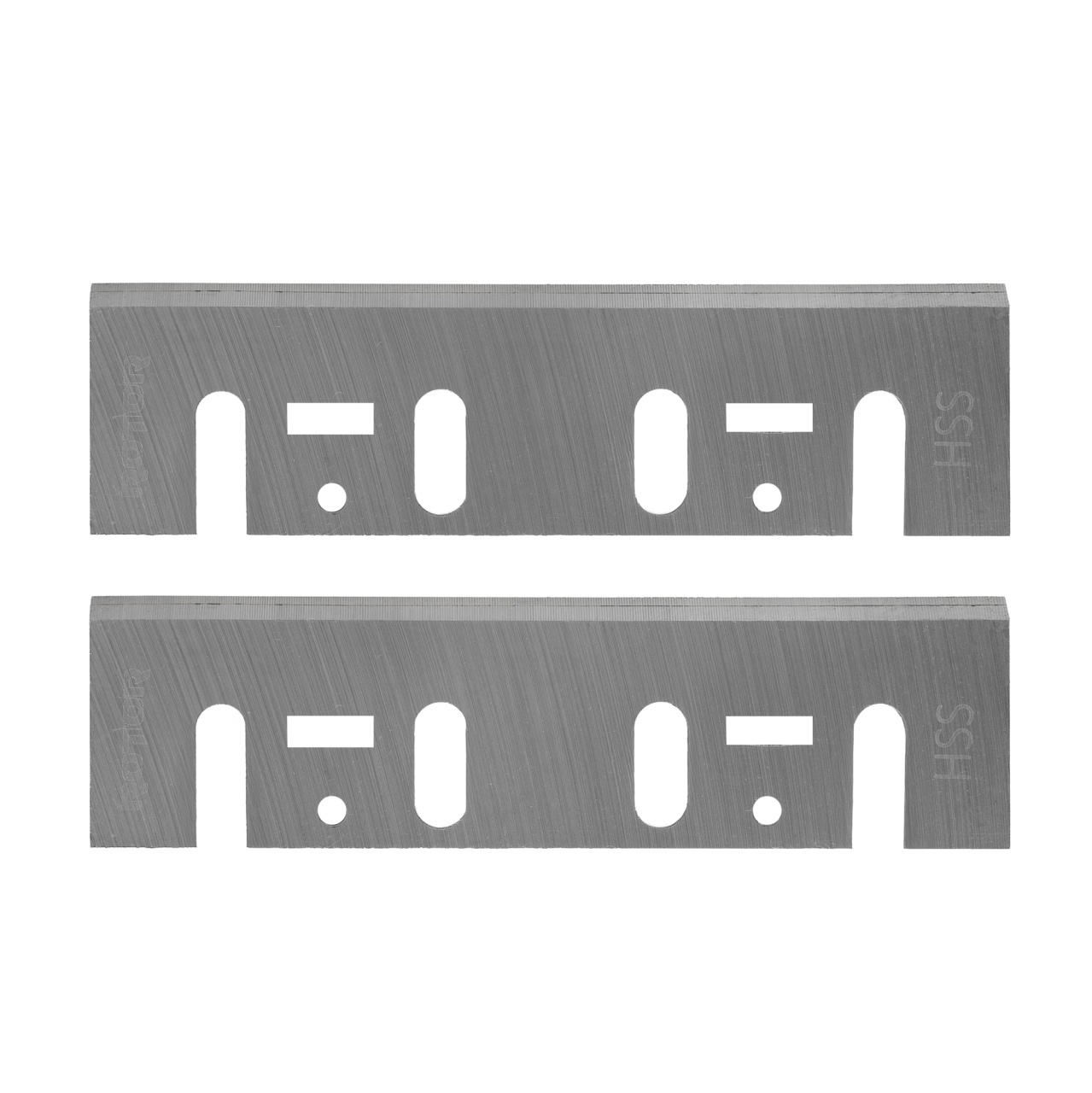 Setul conține două lame, permițând o înlocuire rapidă și ușoară, asigurând astfel funcționarea optimă a rindelei dumneavoastră. Lamele sunt compatibile cu majoritatea modelelor de rindele electrice ce acceptă această dimensiune, fiind un accesoriu esențial pentru lucrările de tâmplărie.