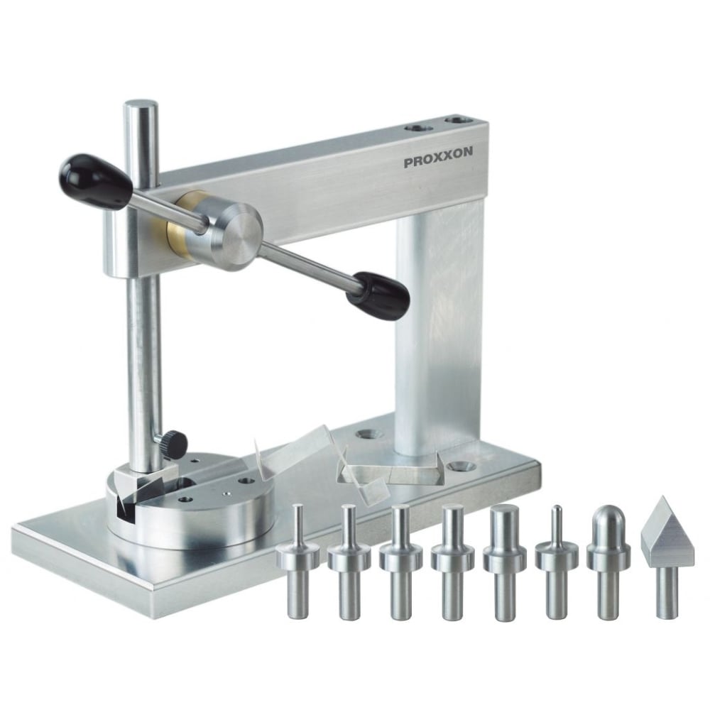 Setul include 5 capete cu forma cilindrica (Ø 3 - 4 - 5 - 6 si 8mm, cu suprafata calita), cate un capat cu profil sferic de Ø 3 si Ø 9mm, precum si o prisma 90° pentru indoirea foilor de metal.