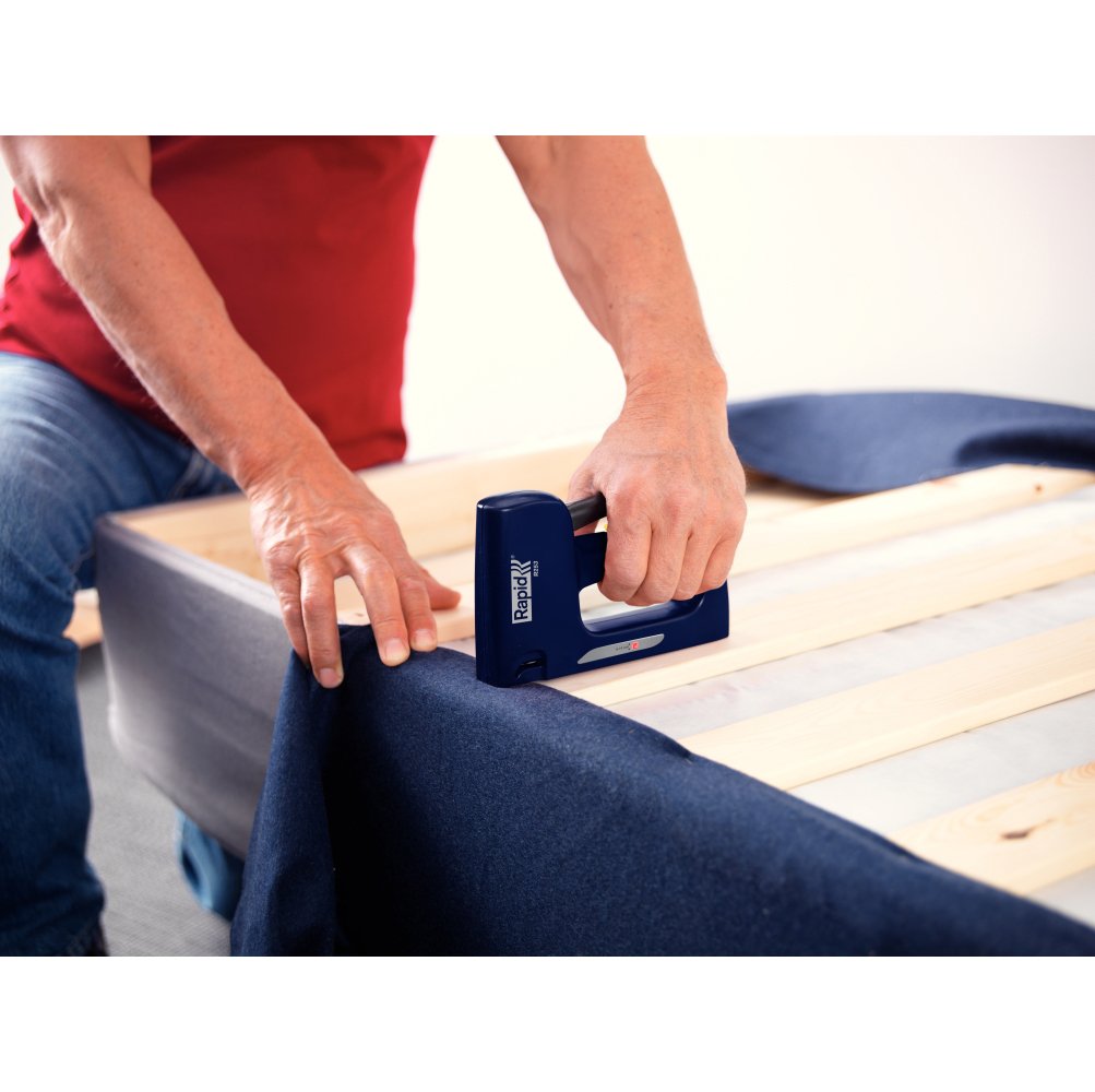 R253E este potrivit si pentru utilizatorii cu maini mici. Ideal pentru tapiteria mobilierului, lucrarile decorative cu diverse tipuri de textile sau pentru fixarea pilotelor, covoarelor, afiselor, pielii sau textilelor mai groase.