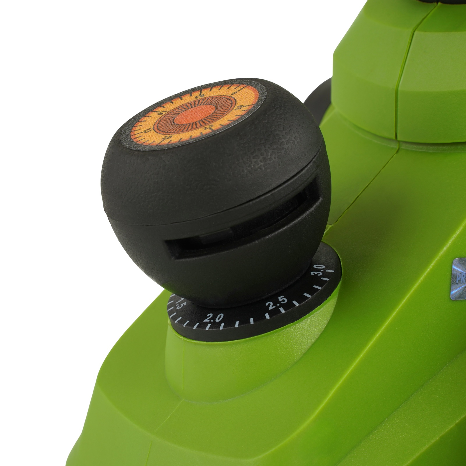 Rindea Electrica cu masa Procraft PE 1650Rindea stationara Procraft PE1650 cu suprafata de lucru de 250 mm x 82 mm cu doua cutite de la producatorul de scule hobby si semiprofesioanle Procraft. In pozitie fixa de lucru scula electrica este integrata intr-un suport cu patru puncte de sprijin si talpa de 290 mm x 165 mm din aliaj metalic cu grosime de 2 mm. Odata fixat cu suruburi in cele 4 colturi aceasta nu se va deforma ca urmare a procesului de lucru si vibratiilor rezultate. Rumegusul generat se va colecta intr-un sac de 300 ml cu fermoar ce poate fi golit regulat si reutilizat. In pozitie fixa aparatul poate fi mentinut in stare de functionare cu ajutorul piesei trapezoidale de blocare a butonului pornire/ oprire in pozitie apasata. Acest model de Rindea electrica cu masa Procraft PE1650 functioneaza gratie unui motor de 800W cu capacitate de rotatie de 16000 rpm. Latimea maxima de rindeluire de 82 mm si strat de material indepartat de 3.5 mm adancime