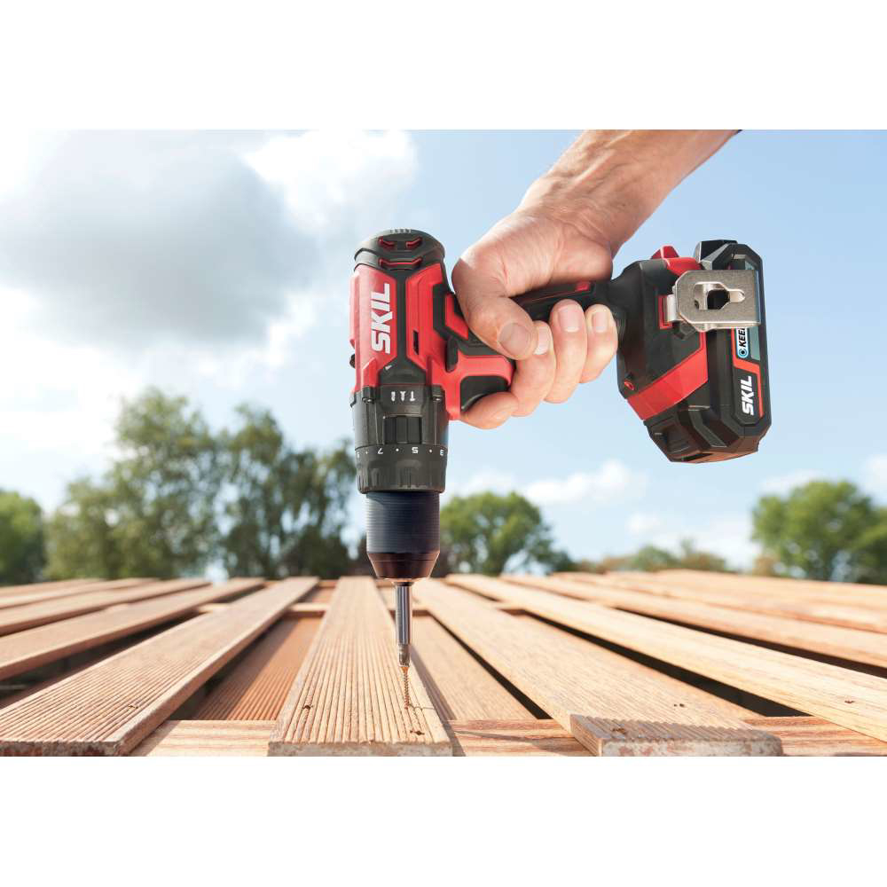 Bormaşină rotopercutor cu acumulator „20V Max“ (18 V) SKIL 3020, cu funcţia pentru impact este ideală pentru găurirea în lemn, metal şi chiar zidărie şi pentru lucrările cele mai grele de înşurubare. 17 setări pentru cuplu asigură înşurubare extrem de precisă. Mulţumită selectorul de funcţii puteţi comuta cu uşurinţă între înşurubare, găurire şi găurire cu percuţie. Are două trepte de viteză pe care le puteţi utiliza fie pentru găurire rapidă, fie pentru înşurubări grele. Această unealtă are o mandrină metalică fără cheie de 13 mm cu manşetă simplă cu blocare, care împiedică alunecarea burghielor. Funcţia de blocare automată a axului permite schimbarea uşoară a accesoriului. În definitiv, această sculă versatilă oferă cu adevărat tot ceea ce aveţi nevoie: tehnologia fiabilă a acumulatorului Litiu-ion, turaţia variabilă pentru un control complet, iar lumina LED asigură o bună vizibilitate a lucrării. Mai mult, acest instrument are un indicator convenabil cu LED-ul înainte / înapoi, astfel încât să puteţi vedea imediat în ce direcţie conduceţi. Şi în final, dar nu în cele din urmă, designul ergonomic şi mânerul moale asigură un confort suplimentar în timpul lucrului. SKIL 3020 HC este livrat împreună cu bit de înşurubare cu două capete şi o bandă clemă. Acumulatorul nu este inclus.