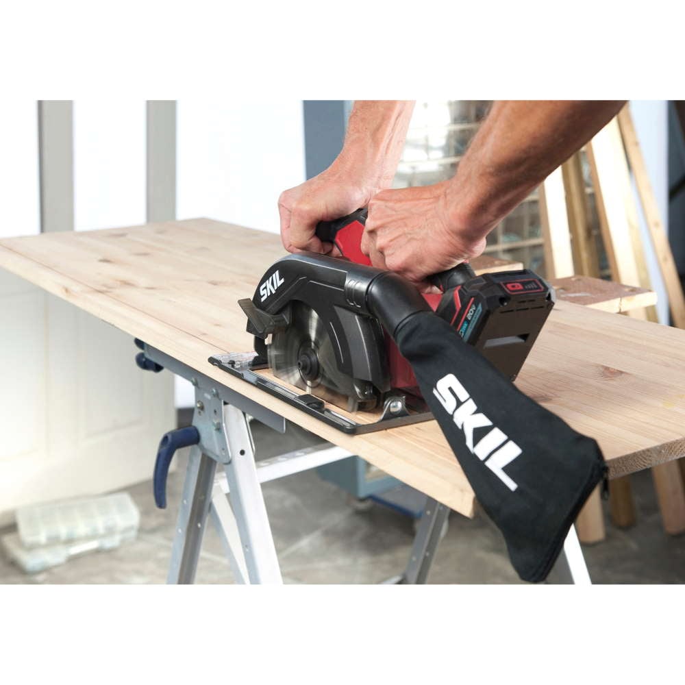 Circular de mână cu acumulator „20V Max“ (18 V) SKIL 3520 este ideal pentru a tăia la o adâncime de până la 54 mm. Pentru a vă face o idee, cele mai multe dimensiuni uzuale (ale scândurilor, grinzilor, etc.) pot fi prelucrate cu această capacitate. Spotul luminos LED asigură buna vizibilitate a zonei de lucru. Placa de bază reglabilă permite efectuarea tăierilor într-un unghi maxim de 50°. Un vizor pentru linia de tăiere este ataşat pentru urmărirea precisă a liniei marcate. Pentru asigurarea curăţeniei locului de munca, cele mai multe aspiratoare casnice uzuale se pot conecta la adaptorul de aspirare. Alte caracteristici utile includ frâna electrică pentru un confort suplimentar în timpul lucrului şi blocajul axului pentru a schimba uşor pânza. Pentru durabilitate, acest circular de mână este echipat cu rulmenți etanșeizați. Rulmenții etanșeizați protejează ferăstrăul de praf, crescând durata de viață. Mai mult, acest circular de mână are mânere ergonomice moi, care asigură un control optim şi confort de lucru. SKIL 3520 CA este livrată cu un acumulator „20V Max“ (18 V) 2,5 Ah „Keep Cool“ şi un încărcător „Rapid“, o pânză de ferăstrău cu vârf de carbură cu 24 dinţi, un ghidaj paralel, adaptor pentru aspirator şi sac pentru praf.