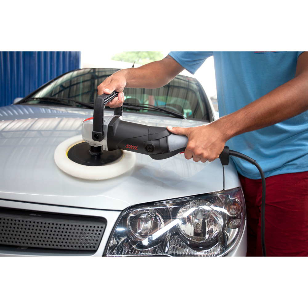 SKIL Masters 9955 este o maşină de polişat profesională livrată într-o geantă robustă SKIL Masters cu două mânere laterale diferite, plăci suport din Velcro de 125 mm şi 180 mm precum şi două discuri de polişat din lână de miel. Puteţi utiliza maşină de polişat de 1300 W pentru eliminarea zgârieturilor de pe autovehicule sau ambarcaţiuni, pentru ameliorarea aspectului autovehiculului sau pentru eliminarea ruginii şi oxizilor de pe aluminiu, oţel şi alte metale. Controlul variabil al turaţiei vă permite să adaptaţi turaţia uneltei la sarcina de executat, în timp ce funcţia electronică pentru turaţie constantă asigură menţinerea unei turaţii constante indiferent presiunea aplicată, pentru un rezultat uniform al polişării. Funcţia de pornire lină asigură o pornire lină, controlată a maşinii de polişat, diminuând împroşcarea substanţei de polişat atunci când porniţi unealta. Mânerul lateral sub forma literei D şi mânerul lateral obişnuit asigură un confort optim în orice situaţie de lucru.