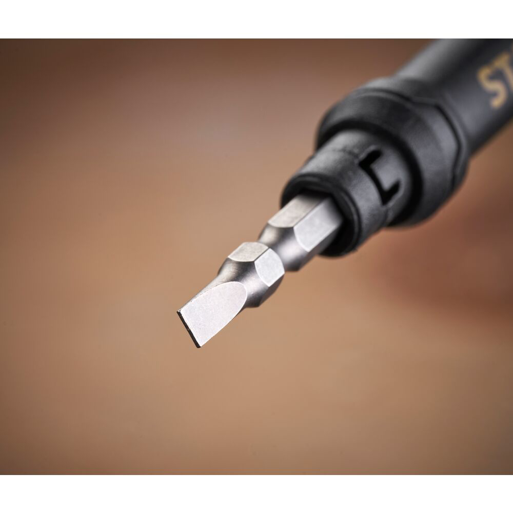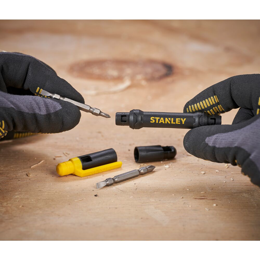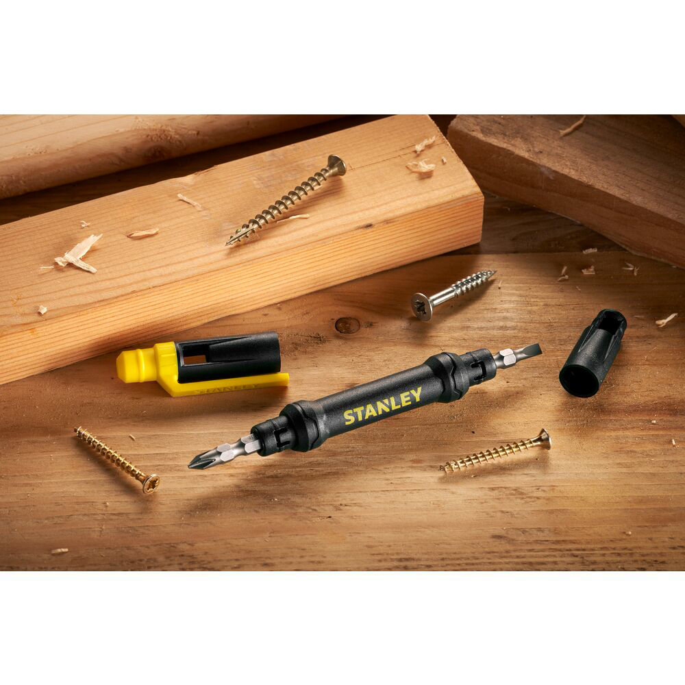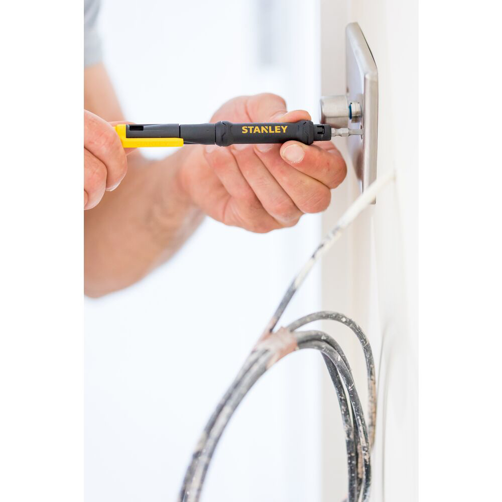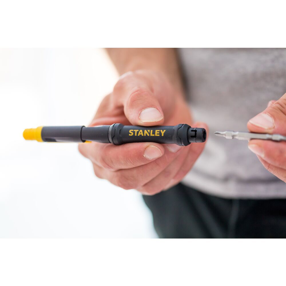 Surubelnița de buzunar 4 în 1 Stanley 66-344M este un instrument compact și versatil, ideal pentru a fi purtat cu ușurință oriunde ai nevoie de el. Cu un design ingenios 4 în 1, această surubelniță este echipată cu două capete de șurubelniță, un cap standard și un cap tip cruce. Fabricată din materiale de înaltă calitate, cu o construcție robustă, această surubelniță îți oferă performanță și fiabilitate în orice situație. Indiferent dacă ești în jurul casei sau pe șantier, surubelnița de buzunar Stanley este partenerul perfect pentru proiectele tale de asamblare și reparare.