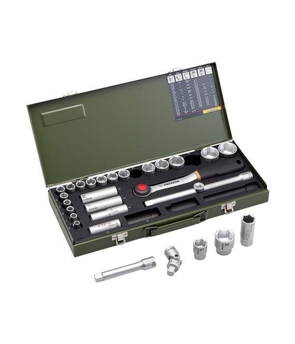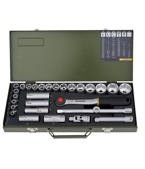 Trusa chei tubulare in cutie de metal, Proxxon 23000, 1/2', 29 buc