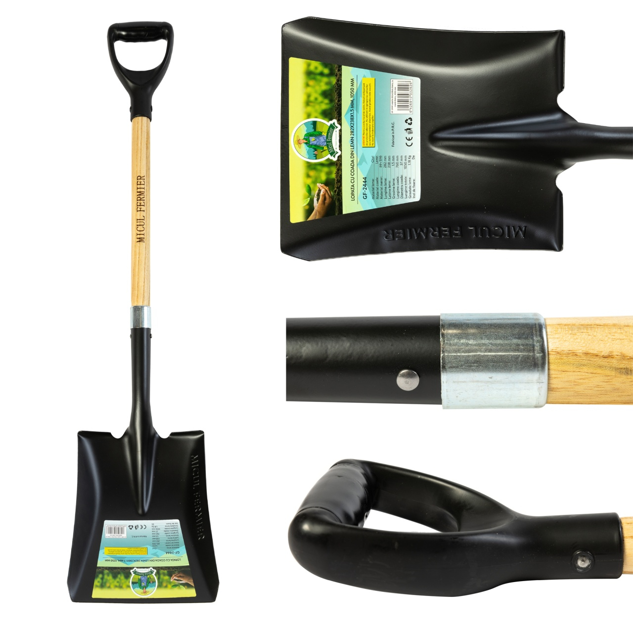 Lopata 282x238x1.5mm, cu coada lemn, 1050 mm Avantaje: Lama din otel; Coada din lemn de esenta tare; Maner pentru aderenta si utilizare mai usoara; Rezistenta la umiditate; Protectie impotriva coroziunii.