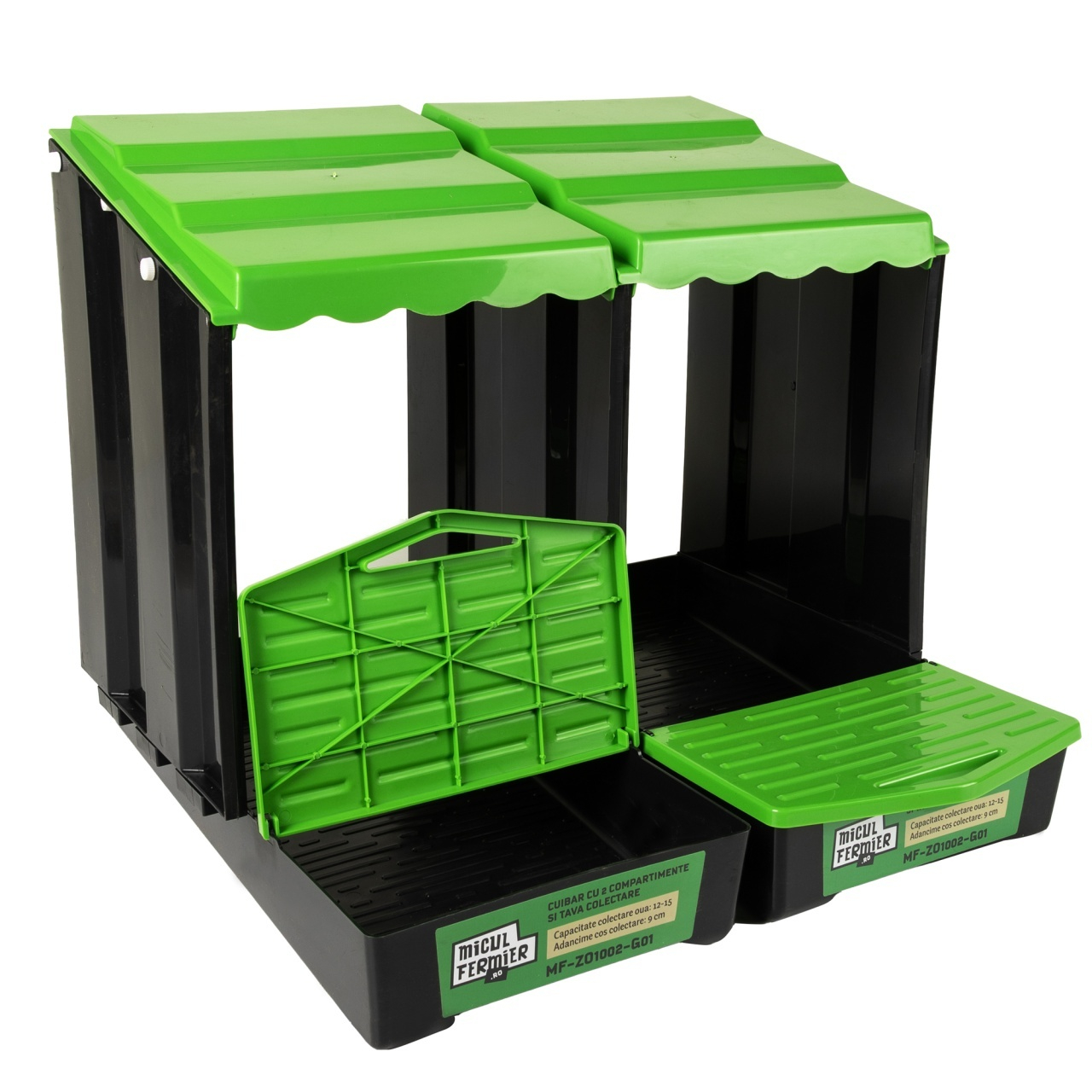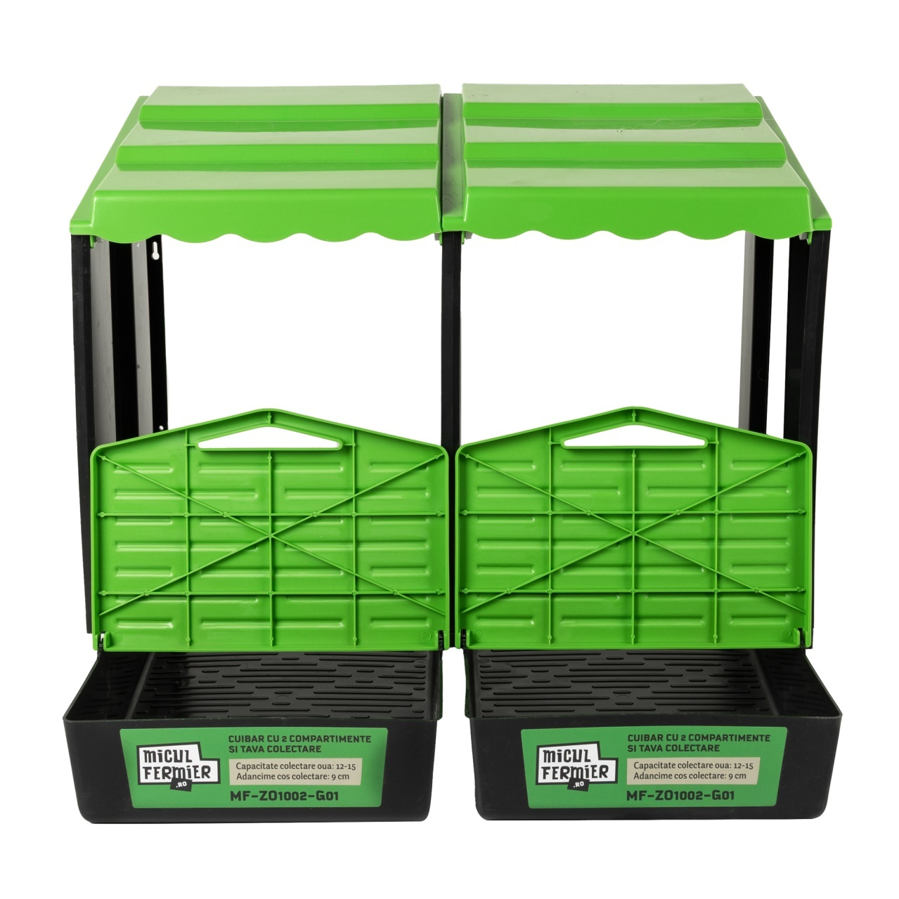 Cuibar Micul Fermier, model 12, dotat cu tavă de colectare pentru ouă. Asigură un spațiu igienic și sigur pentru găini, fiind ușor de curățat și întreținut. Ideal pentru ferme mici și gospodării.