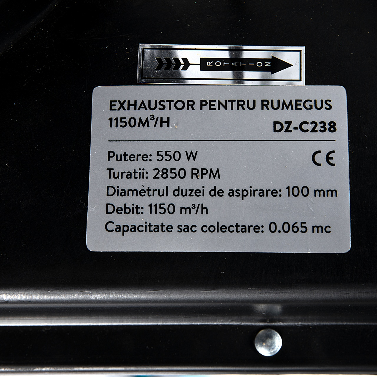 Exhaustorul pentru rumegus 1150 mc/h, Detoolz DZ-C238 este un produs robust, eficient care preia rezidurile prin intermediul curentului produs de paletele unui ventilator care apoi ajung intr-un sac pentru colectare, in acelasi timp fiind prezent in cadrul sistemului un sac in partea de sus pentru filtrarea particulelor fine, curatand astfel aerul. Se poate folosi in atelier unde se prelucreaza lemn si dispune de echipamente specifice, gater sau intr-o fabrica de mobilier. Exhaustorul pentru rumegus 1150 mc/h, Detoolz DZ-C238, are urmatoarele caracteristici:•Exhaustor pentru rumegus 1150 mc/h, Detoolz DZ-C238 este ideal pentru aspirarea aschiilor si rumagusului in timpul operatiunii de frezare, rindeluire de grosime si debitare;•Se racordeaza la masini de prelucrare a lemnului stationare si mobile;•Spatiu necesar redus, capacitate mare de absorbtie;•Capacitate optima de aspiratie datorita motorului si ventilatorului puternic;•Ajuta la pastrarea unui mediu de lucru curat;•Consum redus de energie;•Constructie robusta, din materiale de fabricatie de cea mai buna calitate, rezistente pentru o durata de viata extinsa;•Roti pentru un transport facil si rapid;•Produs cu raport pret/calitate excelent;•Trebuie folosit numai pentru destinatia pentru care a fost construit.Continut colet:• Exhaustor pentru rumegus;• Sac;• Furtun de aspiratie;• Sistem transport pe roti;• Carlig pentru sac;• Manual de instructiuni;• Cutie de transport.