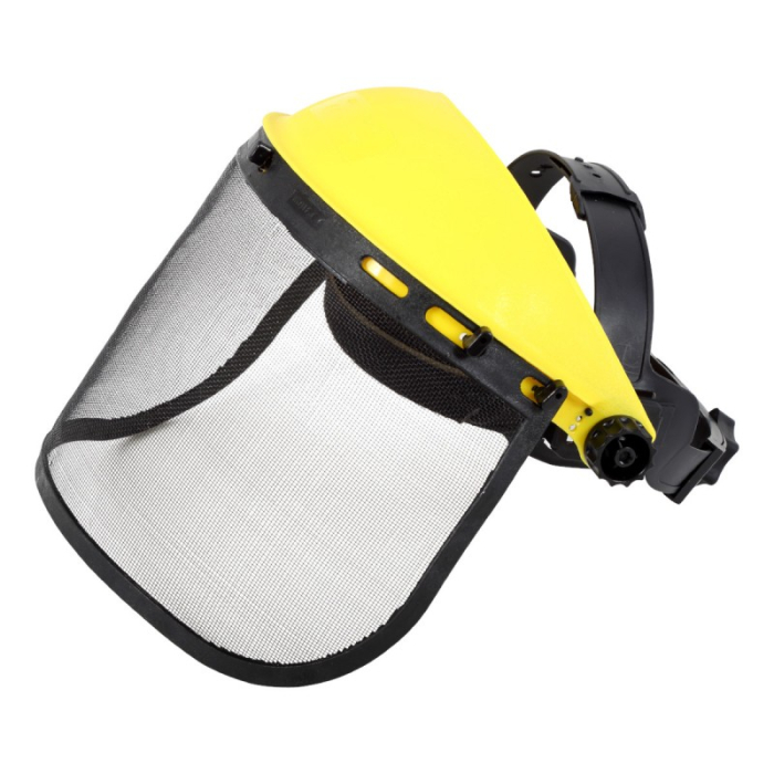 Masca viziera din sita metalica cu calota superioara si fixare reglabila.