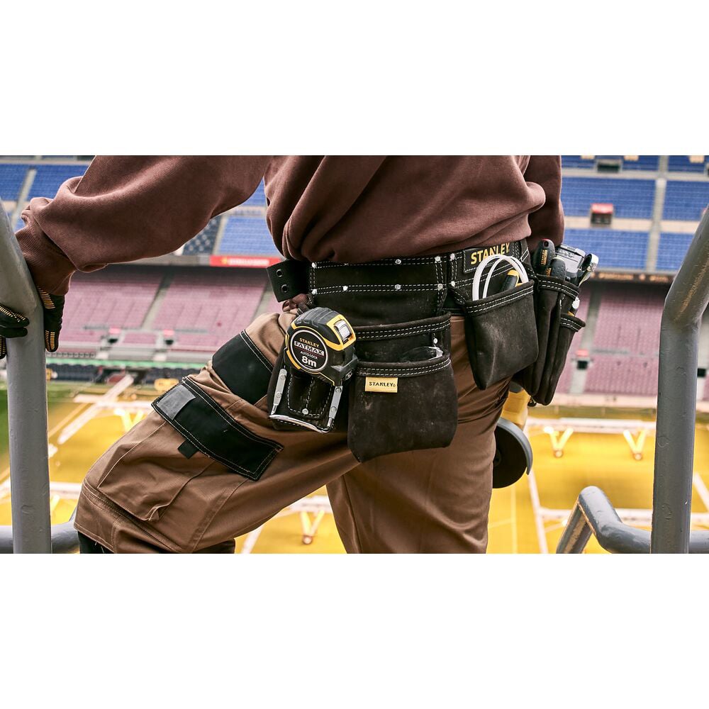 Cureaua pentru scule din piele STANLEY® are buzunare și suporturi pentru acces comod la scule, precum și o buclă integrată pentru ciocan, fabricată din oțel, pentru a depozita ciocanele în siguranță. Șorțul are o curea reglabilă și o cataramă pentru confort și siguranță optime. Produsul fabricat din piele întoarsă de calitate superioară pentru durabilitate, face parte din gama de curele de scule din piele STANLEY®.
