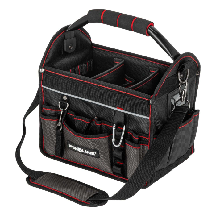 Geanta de scule mică deschisă Proline 62155 reprezintă o soluție compactă și funcțională pentru profesioniști și pasionați de bricolaj, care au nevoie de acces comod la cele mai importante unelte în activitatea zilnică. Se potrivește perfect pentru montori, tehnicieni de service, instalatori și specialiști care lucrează în teren.