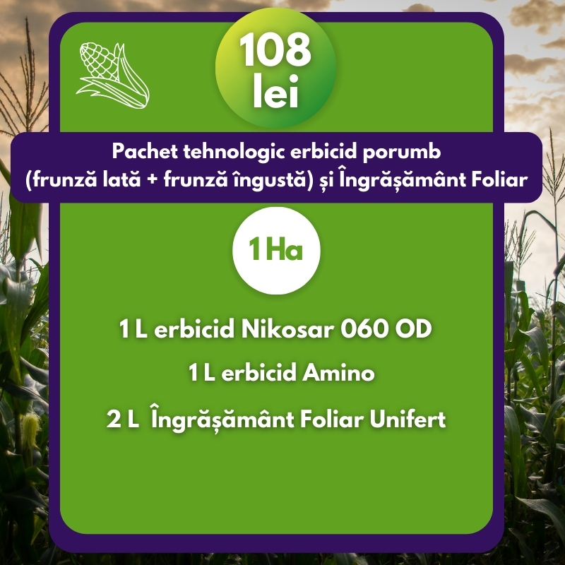 Pachet tehnologic erbicid porumb (frunză lată + frunză îngustă) și Îngrășământ Foliar- 1 Ha