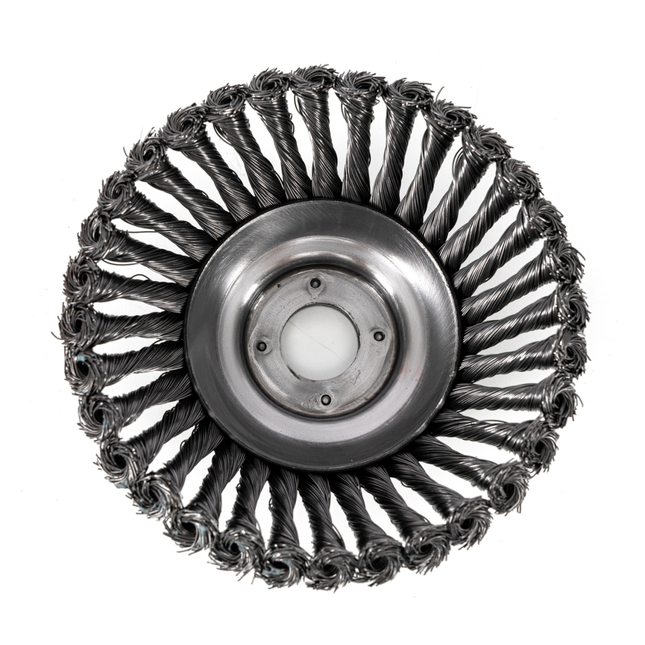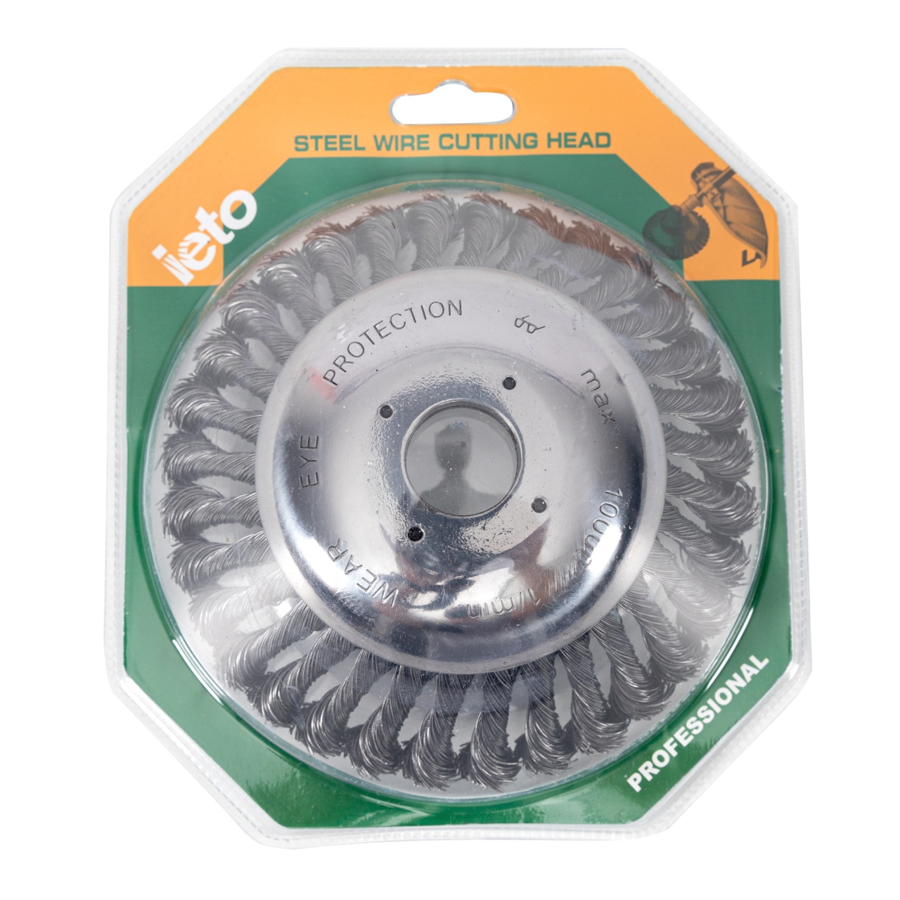 Disc cu perii din sarma pentru curatat pavele, borduri etc de buruieni si diverse plante.Discul se monteaza pe motocoase de minin 1 CP si sunt potrivite pentru indepartarea plantelor si a buruienilor de pe pavaje, borduri, ziduri si garduri de piatra etc.Utilizarea echipamentului de protectie este obligatorie pentru cel care lucreaza cu motocoasa.Acest disc poate veni in ajutorul dumneavostra in maturarea / curatarea suprafetelor din asfalt sau beton.Se poate monta foarte usor (sistemul de montare este identic cu cel al discurilor clasice).Este adaptabil cu toate modelele de motocoase. Caracteristici:•Material: metal•Sarma rasucita in manunchiuri (32)•Diametru: 6" (15cm)