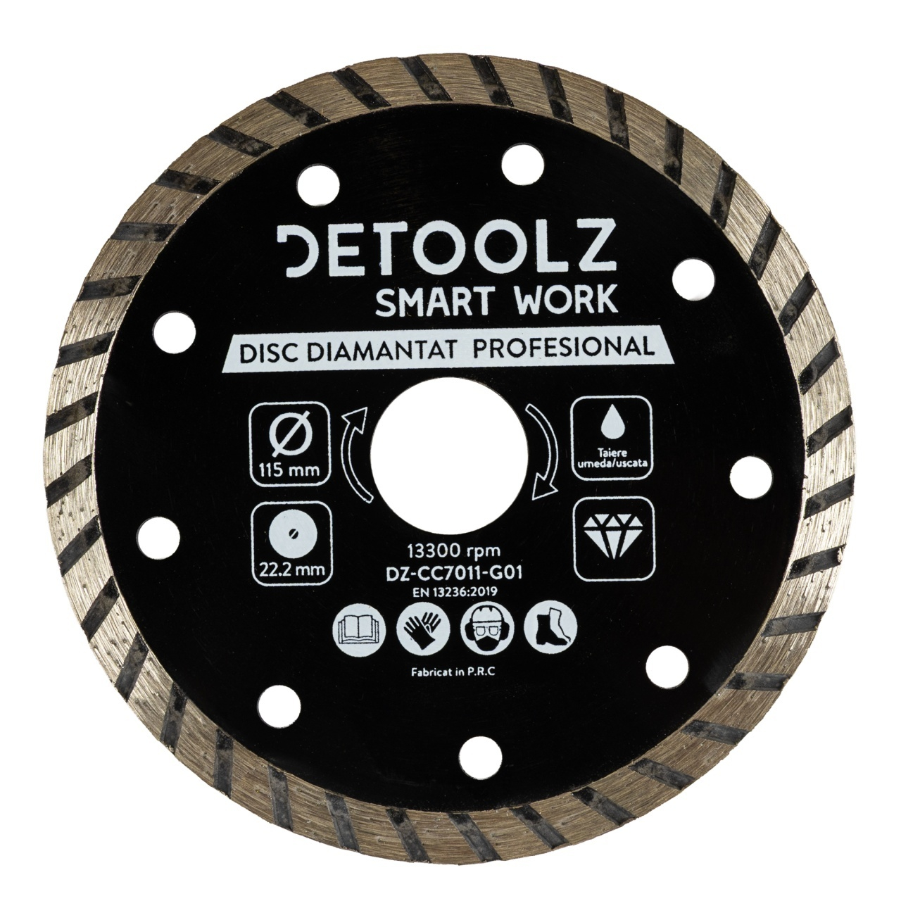 Disc diamantat turbo Detoolz 115x22.2mm, taiere umeda/uscata