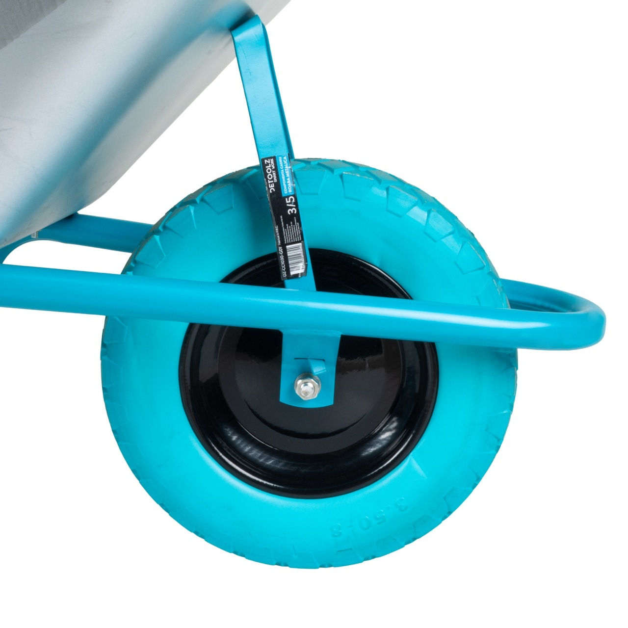 Roaba metalică Detoolz, 85L, cuvă din oțel zincat, roată poliuretan, model DZ-CC1031-G01, oferă următoarele avantaje: • Cuvă fabricată din oțel zincat, asigurând o durabilitate excelentă și o rezistență ridicată la coroziune.• Construită din materiale de înaltă calitate, oferind fiabilitate, durabilitate și utilizare pe termen lung, chiar și în condiții dificile.• Capacitate de 85 litri, ideală pentru transportul materialelor voluminoase precum nisip, pietriș, compost sau hrană pentru animale.• Roată din poliuretan, solidă și stabilă, care asigură o deplasare lină pe diverse tipuri de teren – grădină, șantier sau fermă.• Design ergonomic, echipat cu mânere din plastic pentru un confort sporit în utilizare și reducerea oboselii mâinilor.• Greutate optimă, care face roaba ușor de manevrat chiar și atunci când este încărcată la capacitate maximă.