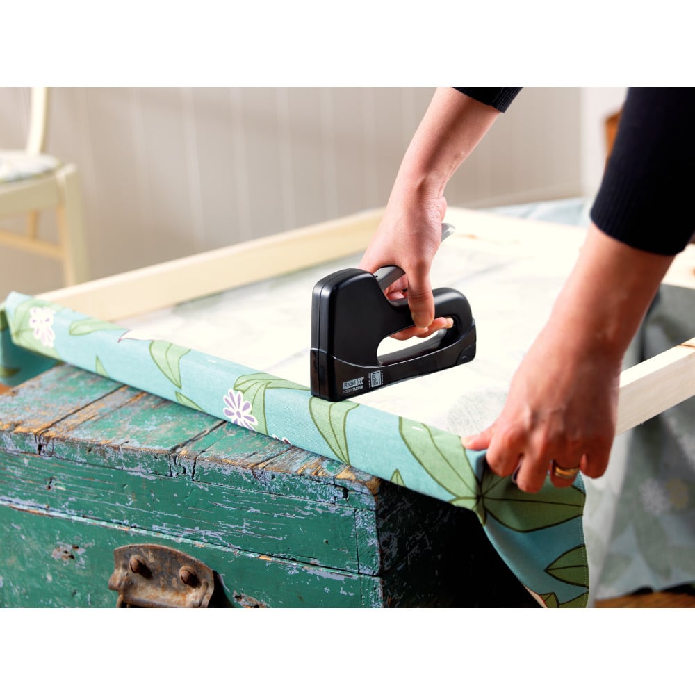 Acest dispozitiv ușor și ușor de utilizat este perfect pentru sarcini simple în jurul casei și este potrivit pentru utilizatorii cu mâini mai mici. Realizează rapid lucrări precum tapițeria mobilei și decorarea cu diferite tipuri de țesături sau textile