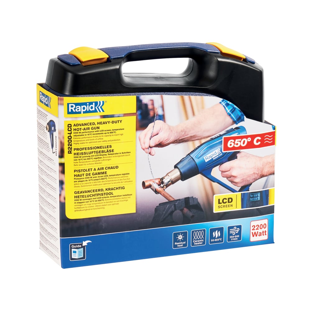 Rapid 5001448, Pistol cu aer cald R2200-LCD, 2200 W, LED, LCD, 3 trepte temperatura si debit, 250 - 500 l/min, 50-650 °C