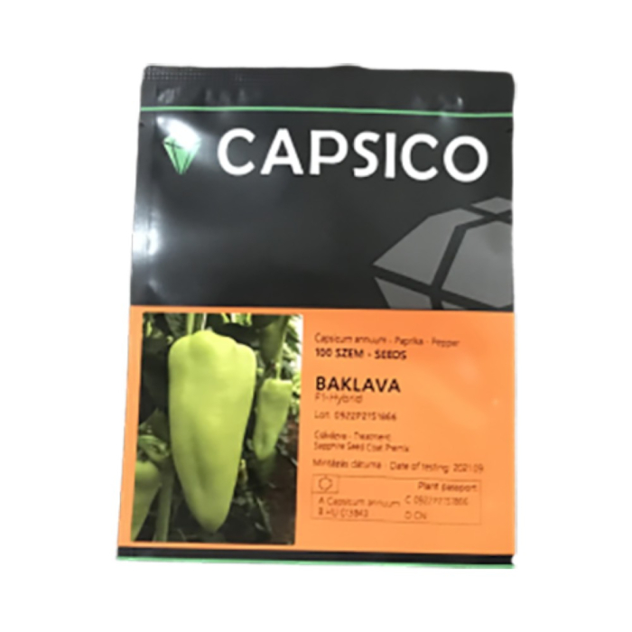 Baklava F1 este un hibrid timpuriu de ardei gras conic, destinat pentru culturile în câmp deschis, spații protejate încălzite și neîncălzite, și în tehnologii hidroponice.