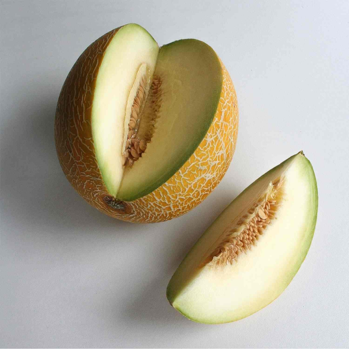 Fructul atinge greutatea de 1,5-2 kg cu pulpă de culoare alb-verzuie cu un aspect exterior foarte plăcut.