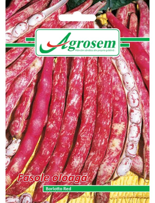 Fasole oloagă Borlotto Red este un soi tradițional italian, de tip pitic, foarte apreciat pentru păstăile sale decorative și boabele de calitate superioară. Păstăile sunt lungi, de culoare roșu-intens pe fond crem-alb, atrăgătoare vizual și foarte productive. Boabele, albe cu pete roșii, sunt folosite în special în bucătăria mediteraneană, având gust dulceag, textură cremoasă și o valoare nutrițională ridicată.