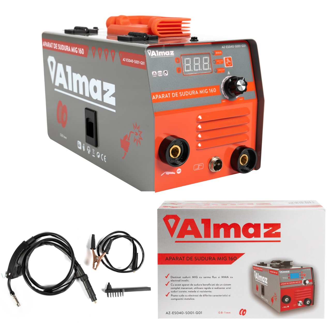 Aparat sudura Almaz, MMA+FCAW(doar sudura sarma flux), intensitate maxima 160A, afisaj digital