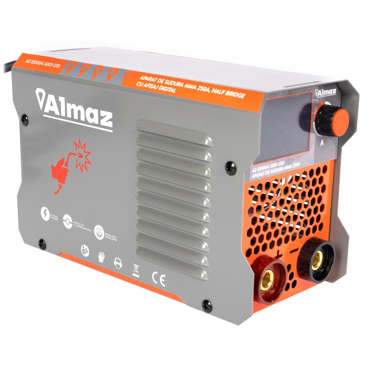 Aparat de sudură MMA 250A cu afișaj digital – Almaz AZ-ES1004-S001-G01 Performanță optimizată cu afișaj digital și funcții avansate! Aparatul de sudură Almaz MMA 250A (AZ-ES1004-S001-G01) este un echipament compact, eficient și ușor de utilizat, ideal pentru sudura MMA (electrozi înveliți) și LIFT TIG (prin achiziționarea separată a unui pistolet și a unei butelii cu gaz inert). Acest aparat oferă un arc electric stabil, consum redus de energie și protecție avansată împotriva supraîncălzirii. Caracteristici principale ✅ Tehnologie INVERTOR IGBT – stabilitate ridicată a arcului și eficiență energetică✅ Afișaj digital – reglare precisă a parametrilor pentru sudură optimă✅ Funcții avansate pentru sudură MMA: Hot Start – crește temporar amperajul pentru o aprindere rapidă a arcului Arc Force – reglează automat curentul pentru un arc stabil și continuu Anti-Stick – previne lipirea electrodului de piesa de lucru✅ Curent de sudură reglabil – adaptabil pentru diverse aplicații✅ Funcționare în medii variate – potrivit pentru interior, exterior și altitudini mari✅ Sistem de răcire eficient – protecție împotriva suprasarcinii și supraîncălzirii✅ Design compact și greutate redusă – ușor de transportat și instalat 📌 Utilizări recomandate ✔ Sudarea structurilor metalice – ideal pentru confecții metalice și reparații✔ Întreținere și reparații – potrivit pentru ateliere auto, ferme și gospodării✔ Sudare MMA cu electrozi înveliți – compatibilitate ridicată cu electrozi bazici și rutilici✔ Sudare LIFT TIG – necesită pistolet și gaz adițional pentru sudură de precizie 📌 Specificații tehnice 🔹 Tip sudură: MMA / LIFT TIG🔹 Tensiune de alimentare: 230V🔹 Curent de sudură: MMA: 30A - 250A / TIG: 20A - 250A🔹 Tensiune fără sarcină: MMA: 62V / TIG: 64.5V🔹 Putere absorbită: MMA: 5.2 kVA / TIG: 3.0 kVA🔹 Diametru electrod: 2.0 - 3.2 mm🔹 Sistem de răcire: Ventilator axial compact🔹 Clasă de protecție: IP21S🔹 Clasă de izolație: F🔹 Dimensiuni: 24.5 x 10.7 x 15.1 cm🔹 Greutate netă: 3.25 kg Beneficii pentru utilizator ✔ Consum optimizat de energie – randament ridicat și economie de curent✔ Operare intuitivă și reglaj simplu – potrivit pentru orice utilizator✔ Transport facil – greutate redusă și design ergonomic✔ Protecție împotriva suprasarcinii și supraîncălzirii – siguranță maximă Atenție! ❌ Nu utilizați aparatul în condiții de umezeală excesivă❌ Nu suprasolicitați aparatul – respectați ciclul de funcționare❌ Asigurați-vă că zona de lucru este bine ventilată și lipsită de materiale inflamabile❌ Purtați echipament de protecție adecvat (mănuși, mască, ochelari de protecție, îmbrăcăminte ignifugă) Almaz MMA 250A – precizie și eficiență pentru sudură profesională și hobby!