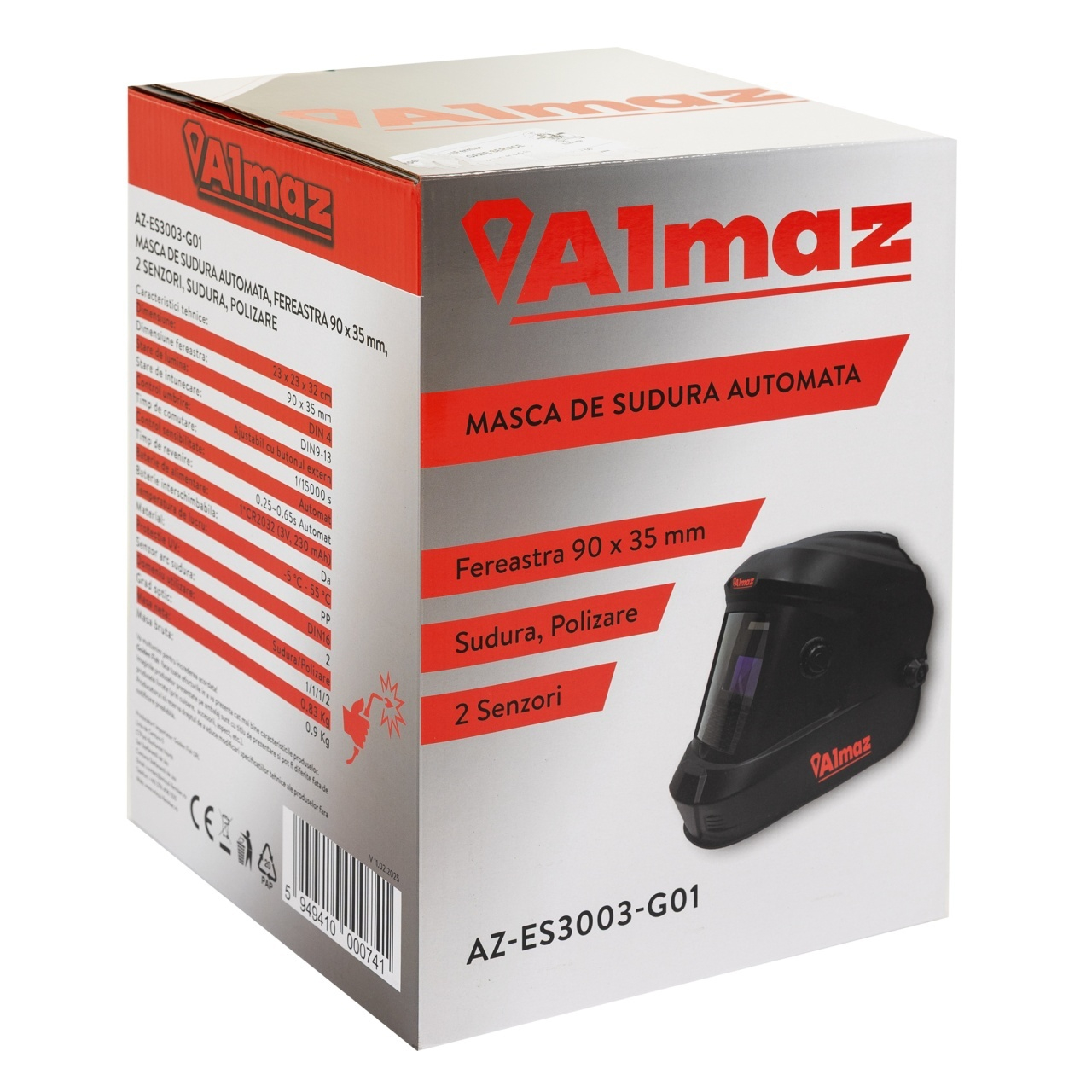 Masca de sudura Almaz, automata, fereastra 90x35mm, 2 senzori, sudura, polizare, AZ-ES3003-G01. Masca de sudura este un set de tehnologie de filtrare spectrala, tehnologie de control inductiv fotoelectric, tehnologie de control al luminii cu cristale lichide intr-un singur produs de inalta tehnologie.