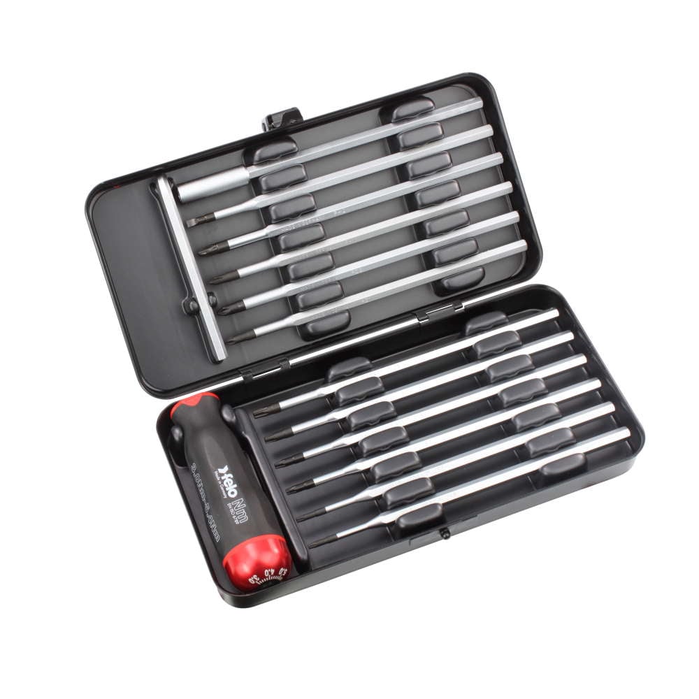 Surubelnitele cu reglaj de torsiune FELO Seria Nm pot fi achizitionate in sub forma de truse (cutie de metal, maner surubelnita dinamometrica plus 12 tije uzuale) sau individuale (manerul de surubelnita sau tije in functie de tipul aplicatiei) pentru a se potrivi exact aplicatiei dumneavoastra sau pentru a putea fi adaugate in truse sau gentile de scule.
