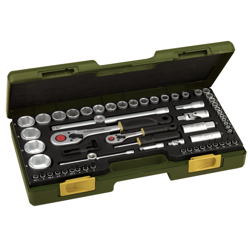 Trusa completa cu chei tubulare, Proxxon 23286, 1/4' si 1/2', 65 piese